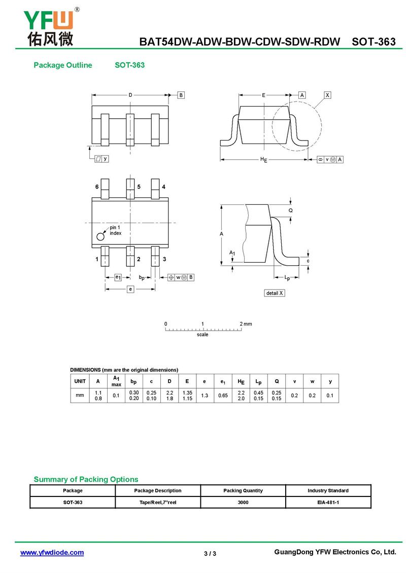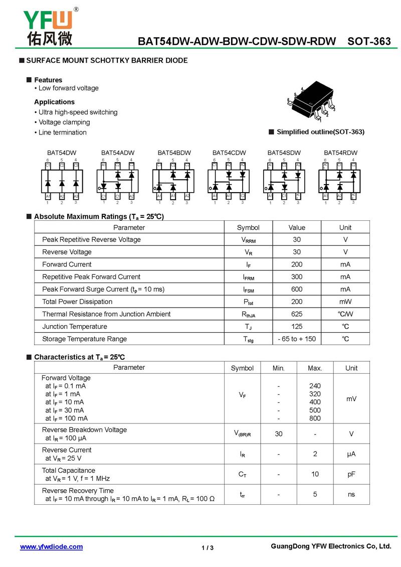 肖特基二極管BAT54RDW 規格書_價格_PDF手冊-廣東佑風微原廠BAT54RDW SOD-363(佑風微)品牌