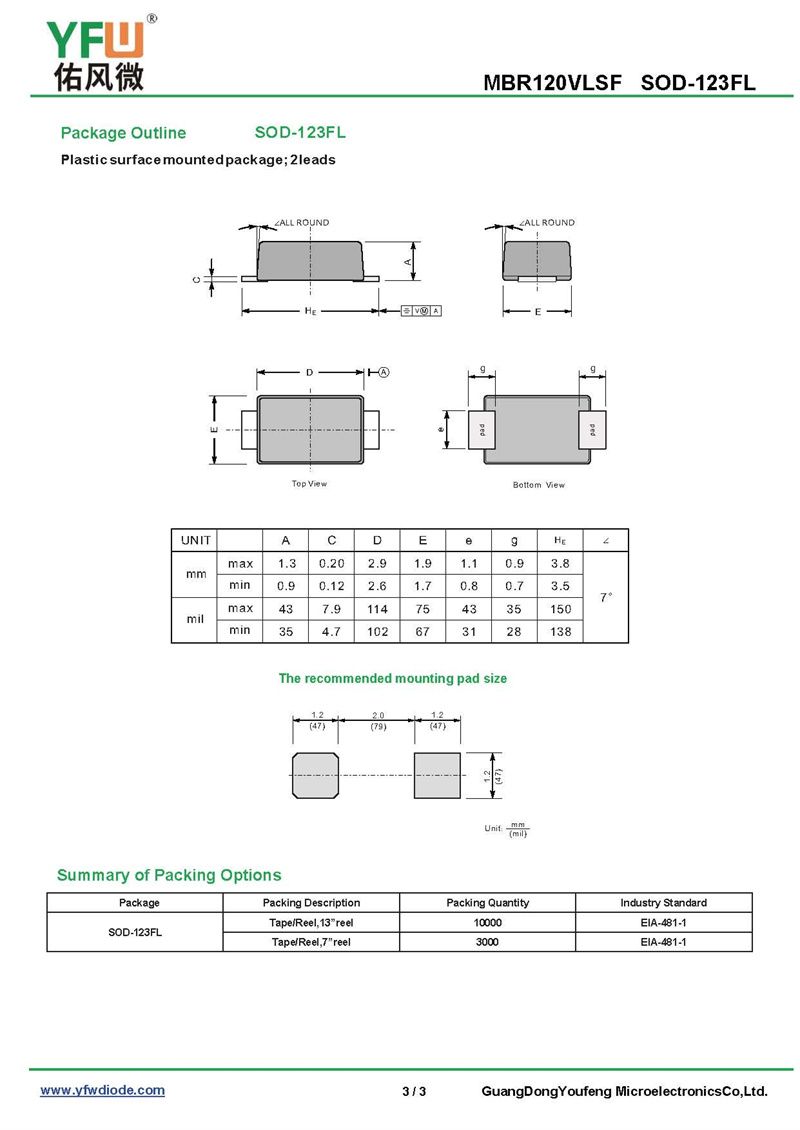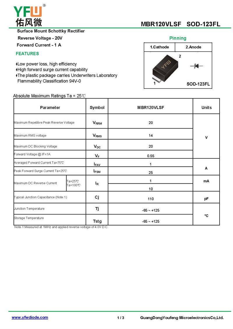 肖特基整流器MBR120VLSF 規格書_價格_PDF手冊-廣東佑風微原廠MBR120VLSF SOD-123FL(佑風微)品牌