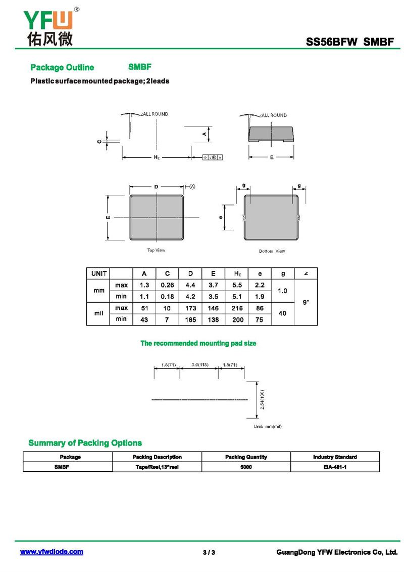 低正向肖特基二極管SS56BFW 規格書_價格_PDF手冊-廣東佑風微原廠SS56BFW SMBF_(YFW佑風微)品牌
