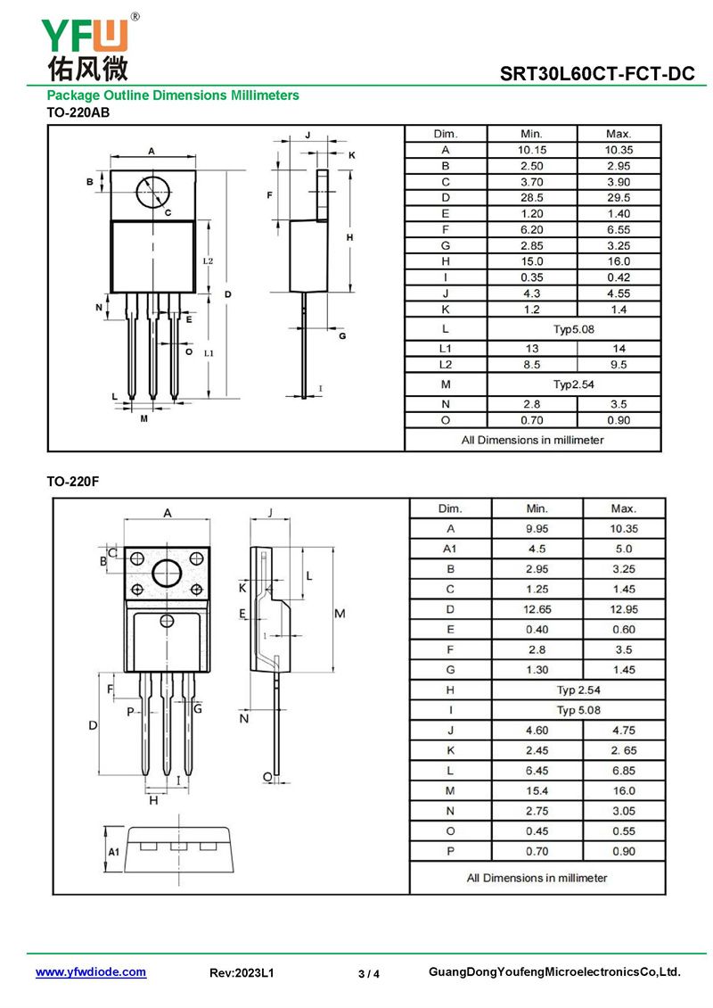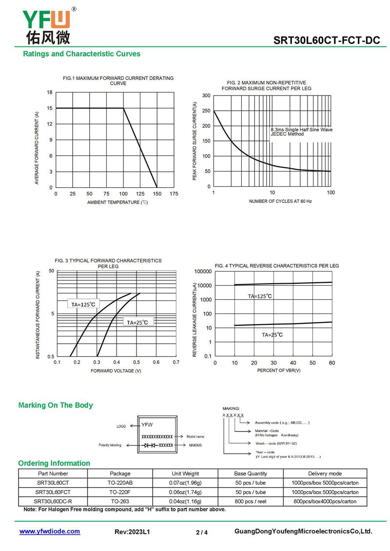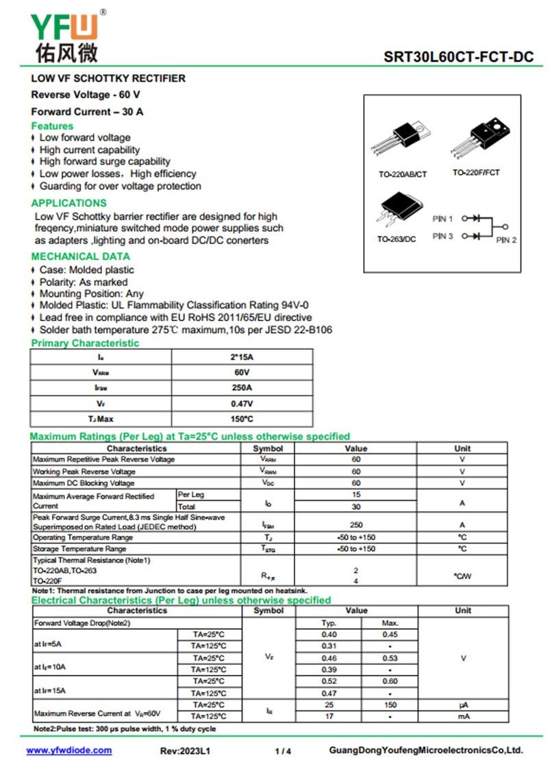 低正向肖特基二極管SRT30L60FCT 規格書_價格_PDF手冊-廣東佑風微原廠SRT30L60FCT TO-220F_(YFW佑風微)品牌