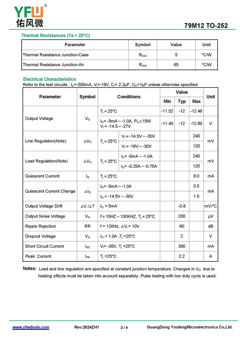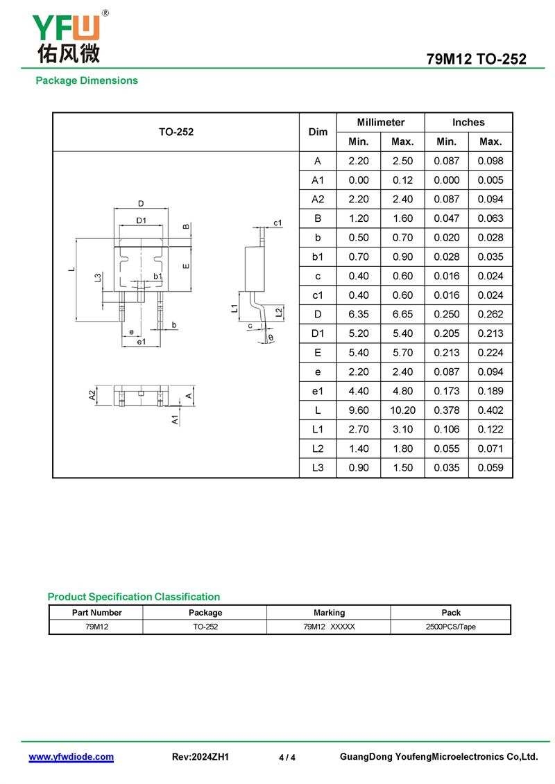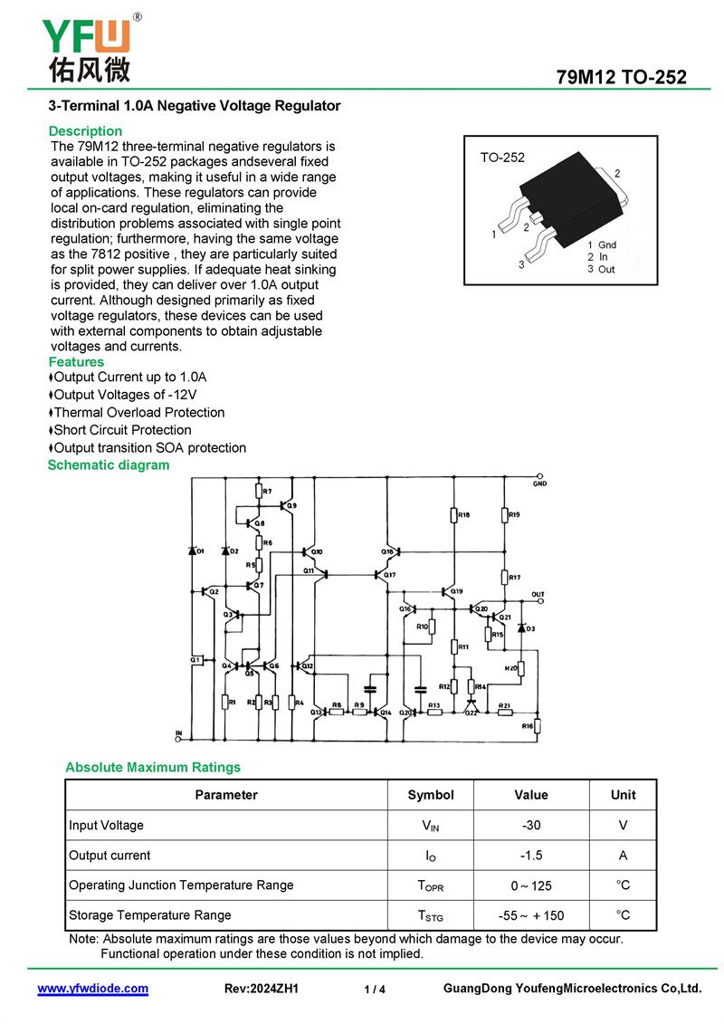 三端穩壓管79M12 規格書_價格_PDF手冊-廣東佑風微原廠79M12 TO-252_(YFW佑風微)品牌