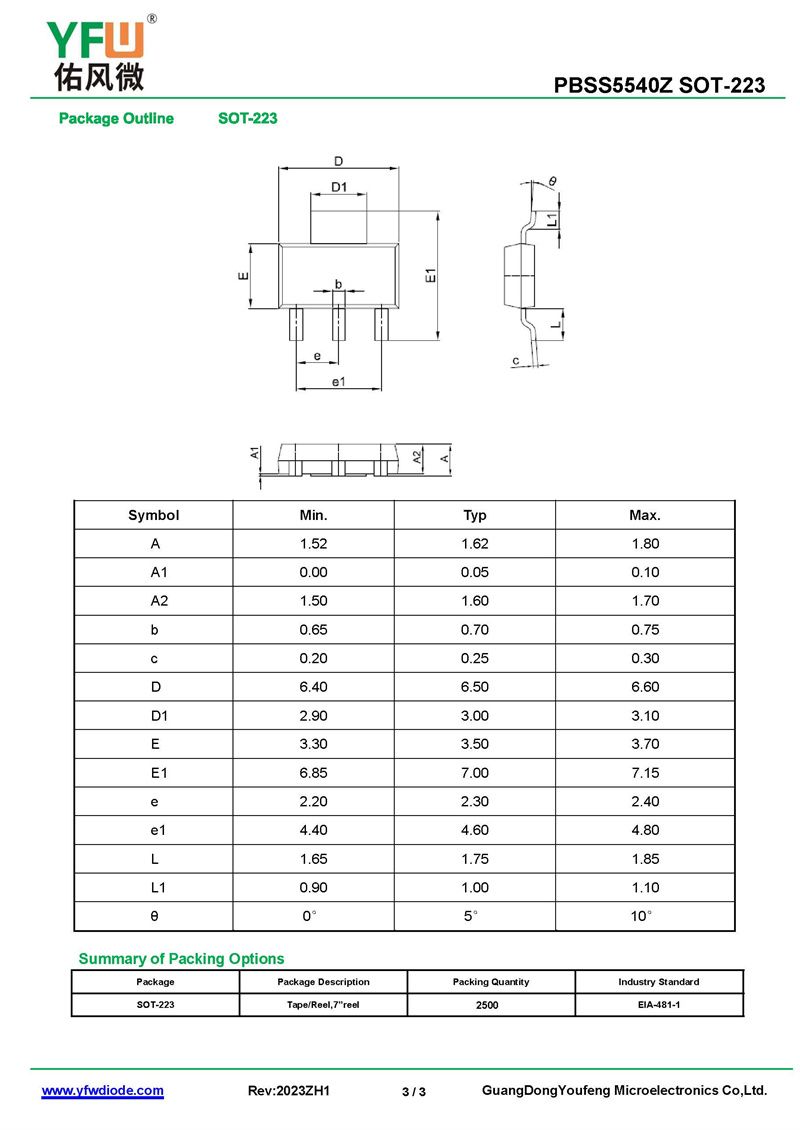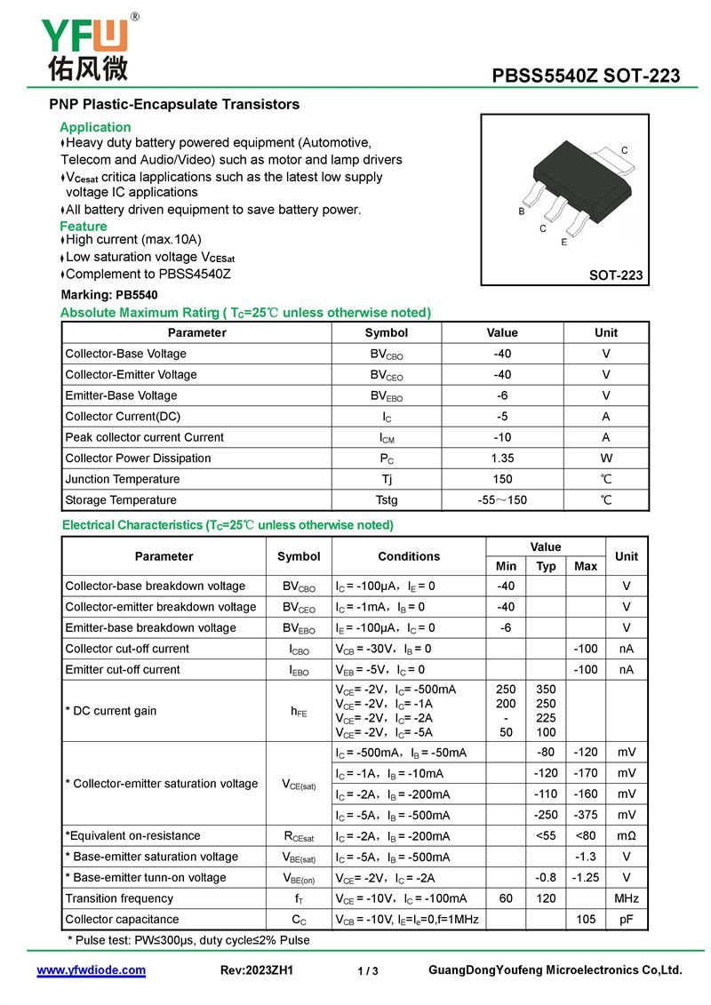 三極管PBSS5540Z 規格書_價格_PDF手冊-廣東佑風微原廠PBSS5540Z SOT-223_(YFW佑風微)品牌
