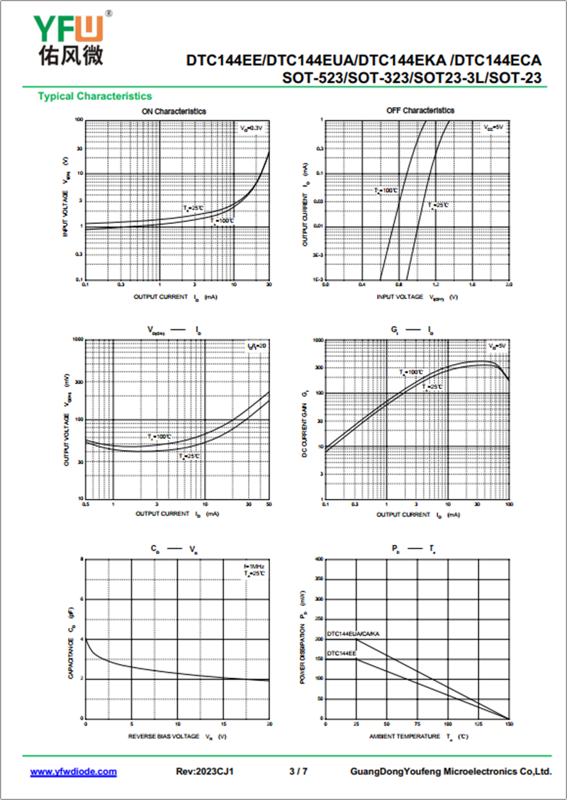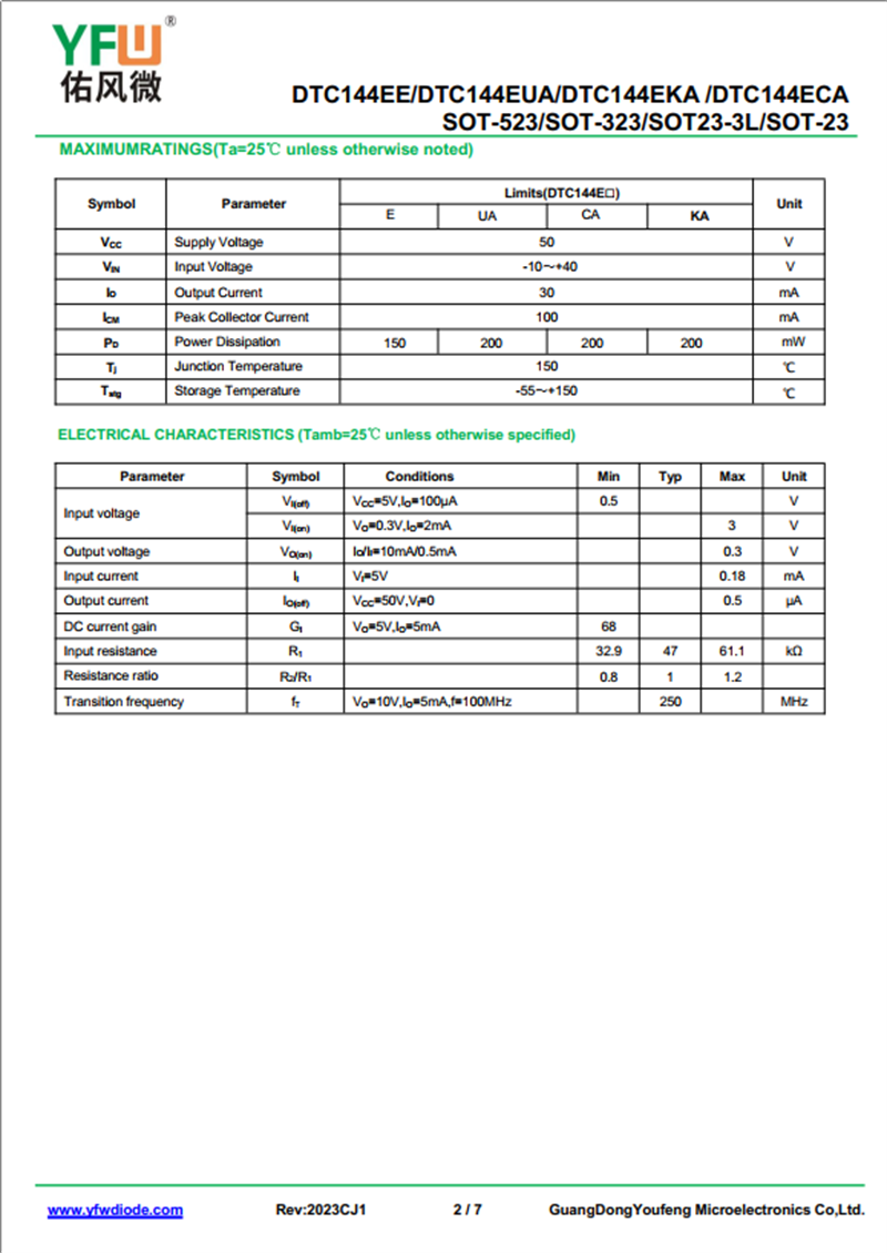 數字晶體管DTC144EUA 規格書_價格_PDF手冊-廣東佑風微原廠DTC144EUA SOT-323_(YFW佑風微)品牌