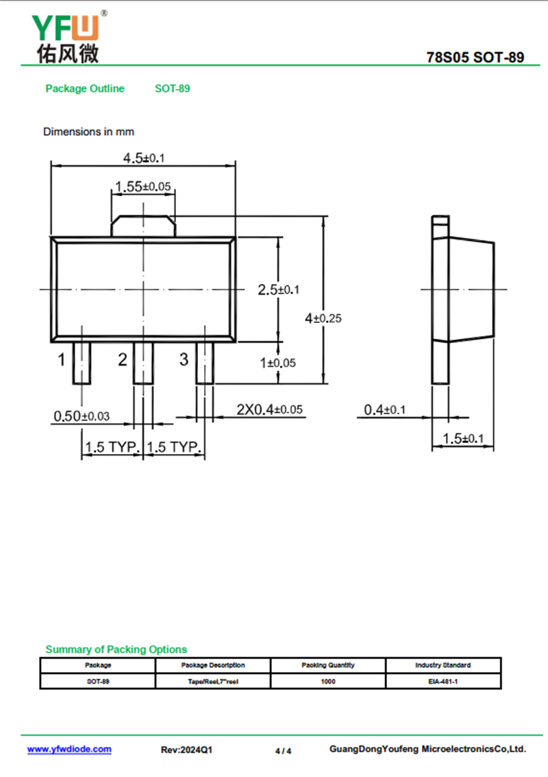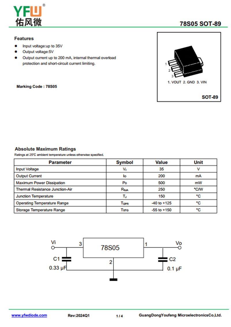 三端穩(wěn)壓管78S05 規(guī)格書_價(jià)格_PDF手冊(cè)-廣東佑風(fēng)微原廠78S05 SOT-89_(YFW佑風(fēng)微)品牌