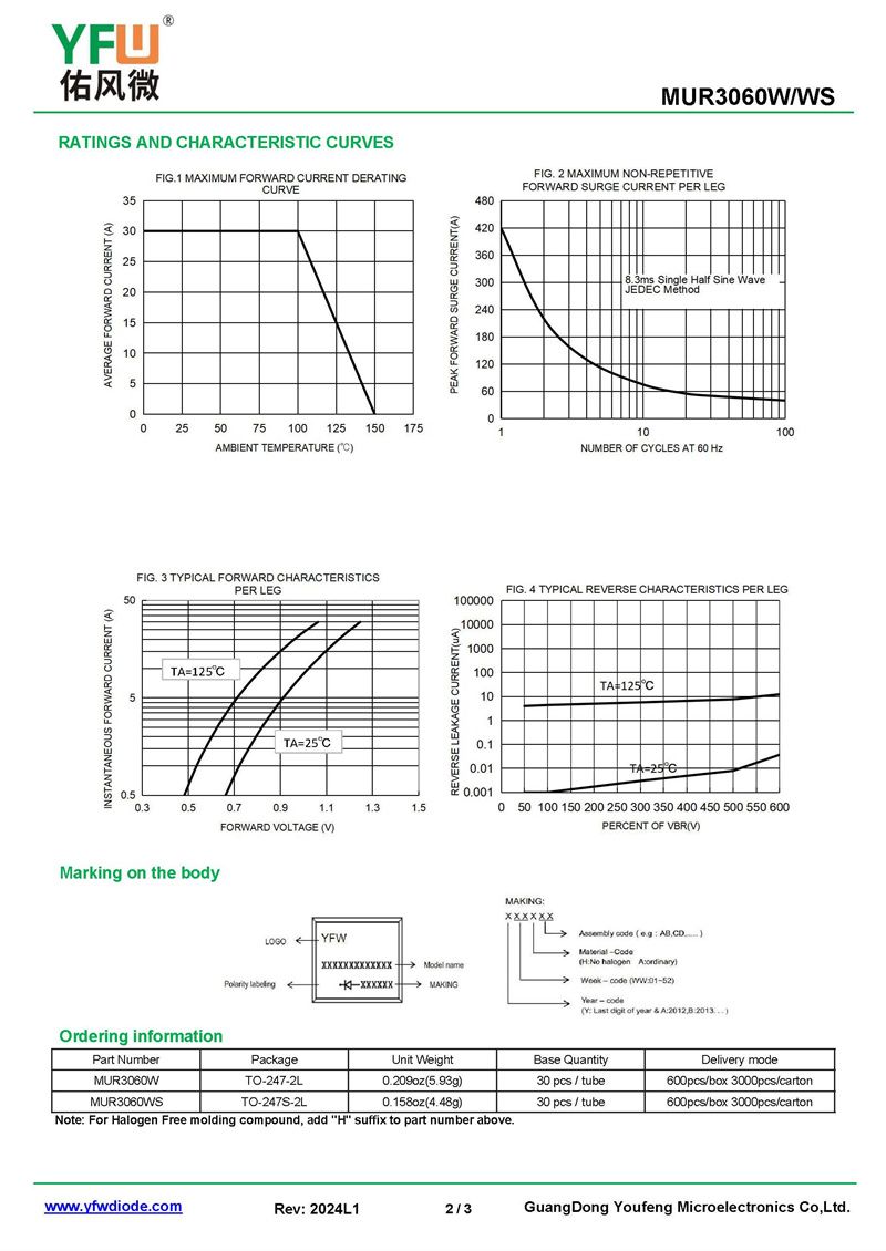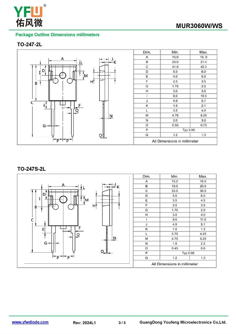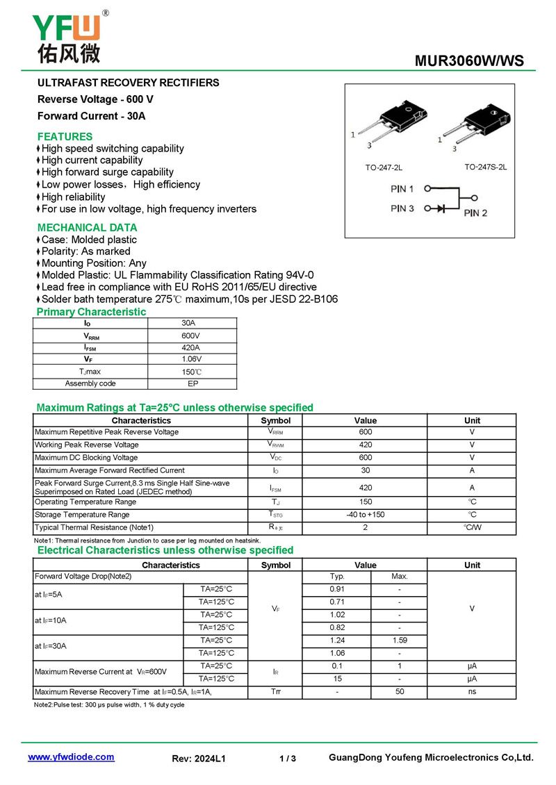 超快恢復(fù)整流器 MUR306OWS 規(guī)格書(shū)_價(jià)格_PDF手冊(cè)-廣東佑風(fēng)微原廠MUR306OWS T0-247S-2L_(YFW佑風(fēng)微)品牌