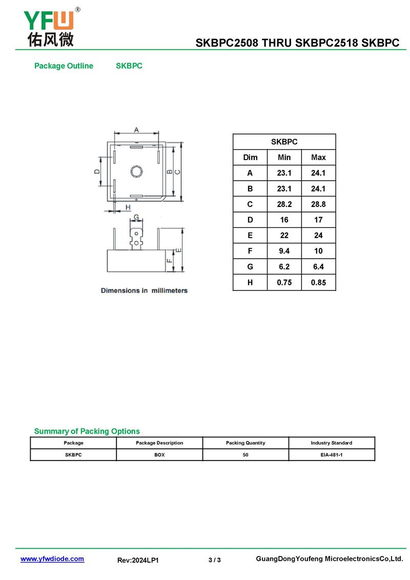 橋式整流器SKBPC2512 規格書_價格_PDF手冊-廣東佑風微原廠SKBPC2512 SKBPC_(YFW佑風微)品牌