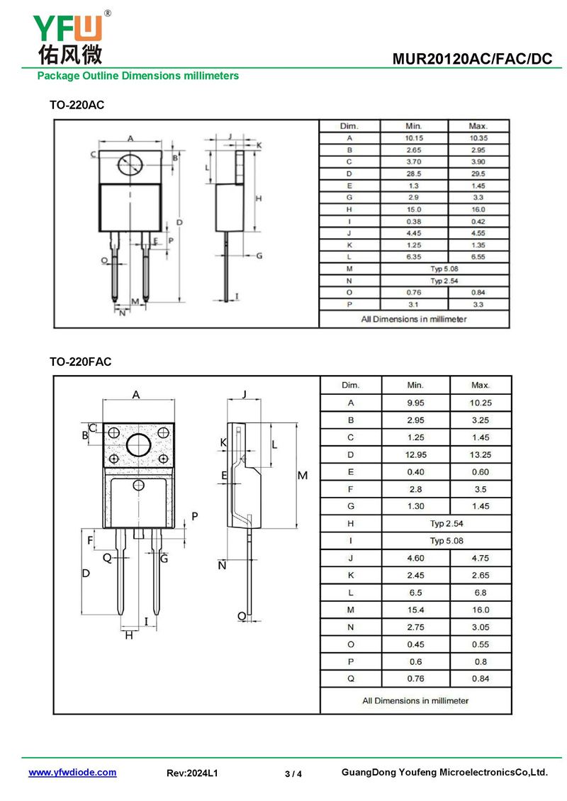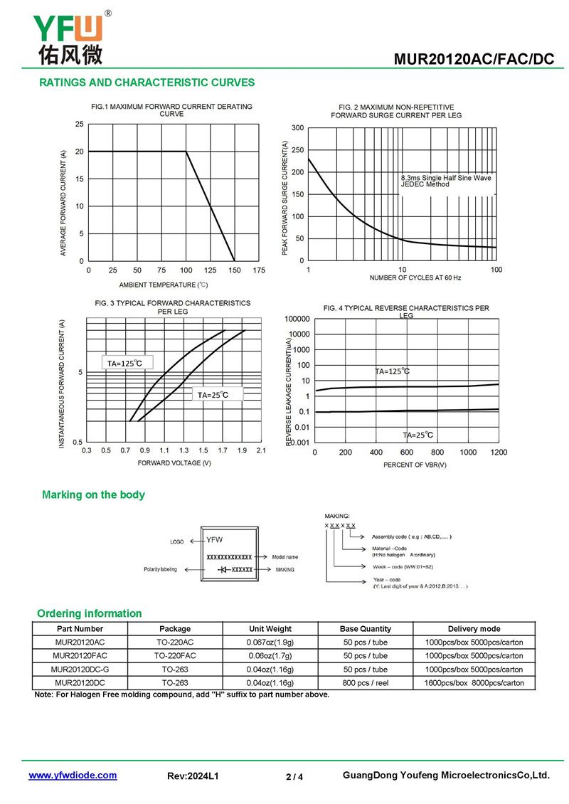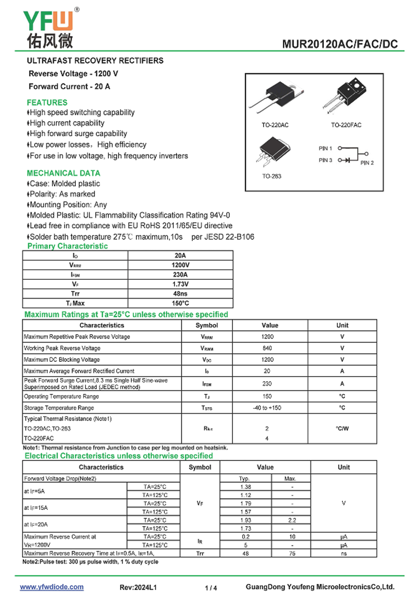 超快恢復整流器MUR20120FAC 規格書_價格_PDF手冊-廣東佑風微原廠MUR20120FAC TO-220FAC_(YFW佑風微)品牌