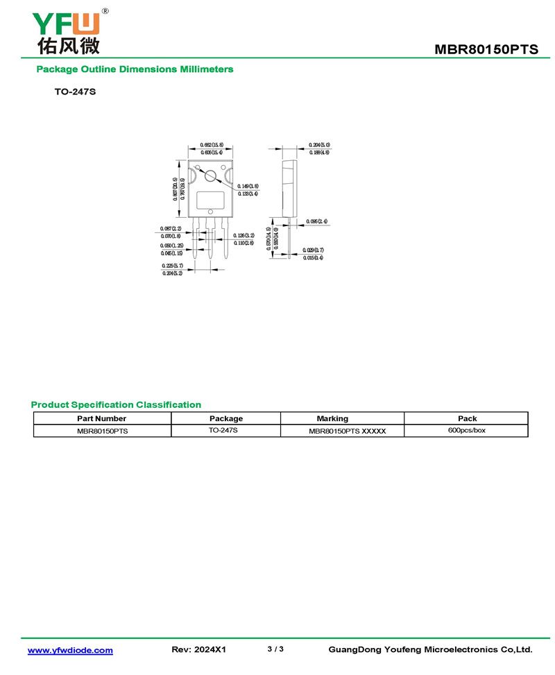 肖特基二極管 MBR80150PTS 規格書_價格_PDF手冊-廣東佑風微原廠MBR80150PTS TO-247S_(YFW佑風微)品牌