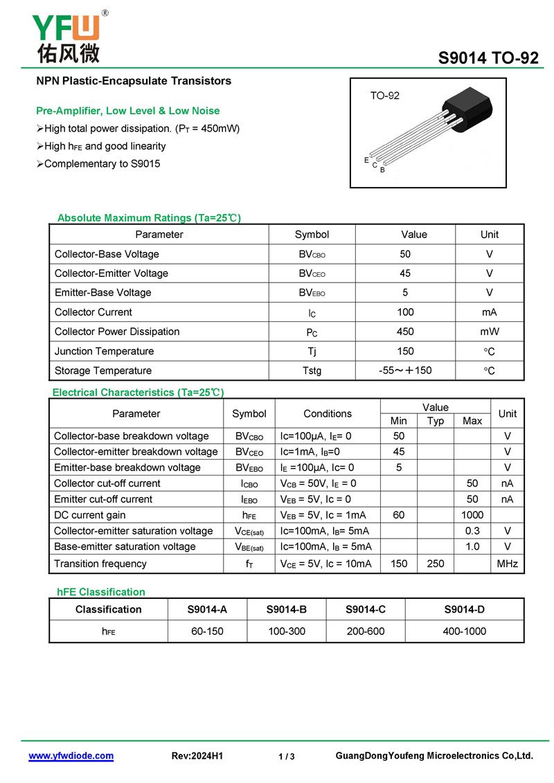 晶體管 S9014 規(guī)格書_價(jià)格_PDF手冊(cè)-廣東佑風(fēng)微原廠S9014 TO-92_(YFW佑風(fēng)微)品牌