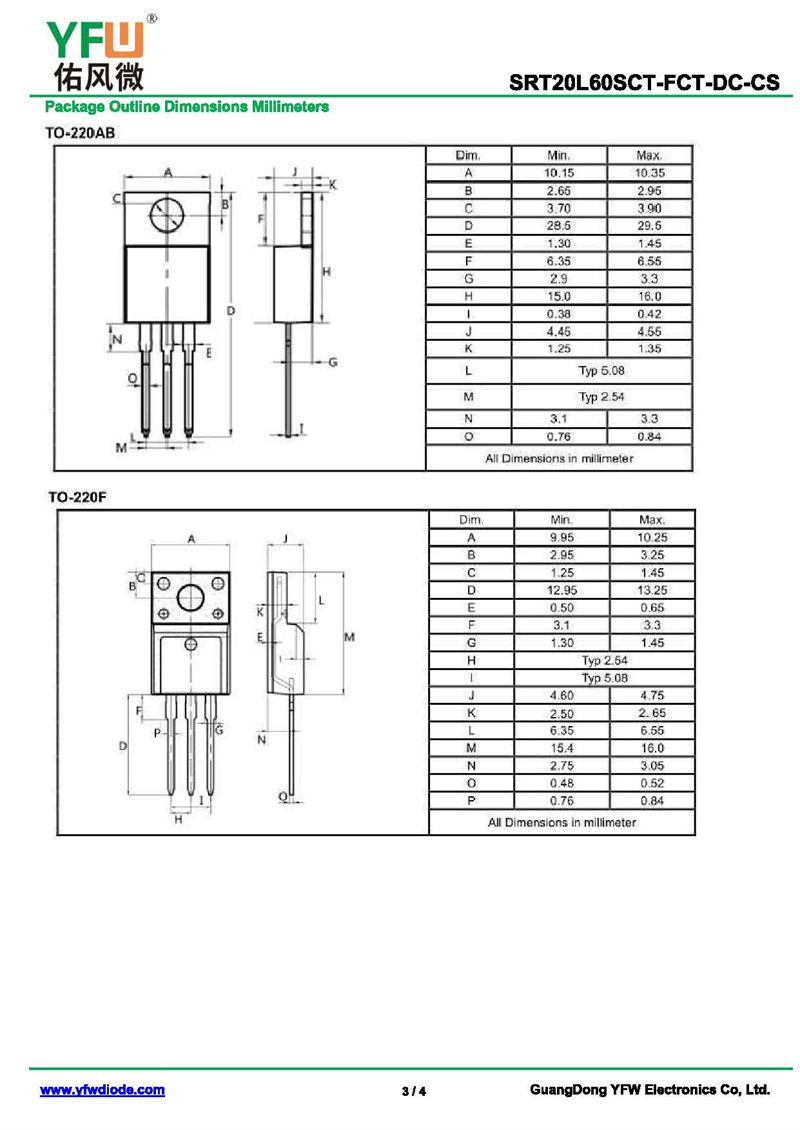 低正向肖特基二極管SRT20L60SCS 規格書_價格_PDF手冊-廣東佑風微原廠SRT20L60SCS TO-252_(YFW佑風微)品牌
