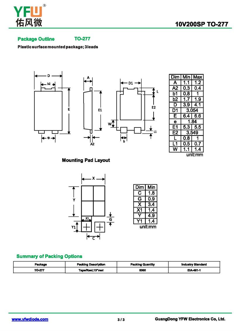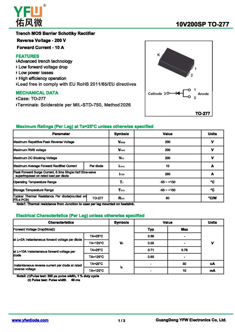 低正向肖特基二極管10V200SP 規(guī)格書_價格_PDF手冊-廣東佑風微原廠10V200SP TO-277_(YFW佑風微)品牌