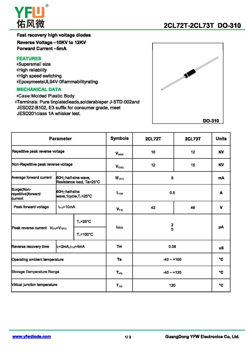 高壓二極管2CL72T 規(guī)格書(shū)_價(jià)格_PDF手冊(cè)-廣東佑風(fēng)微原廠2CL72T DO-310_(YFW佑風(fēng)微)品牌
