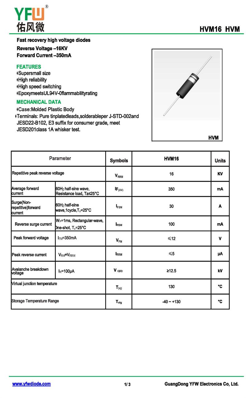 高壓二極管HVM16 規(guī)格書_價(jià)格_PDF手冊(cè)-廣東佑風(fēng)微原廠HVM16 HVW_(YFW佑風(fēng)微)品牌