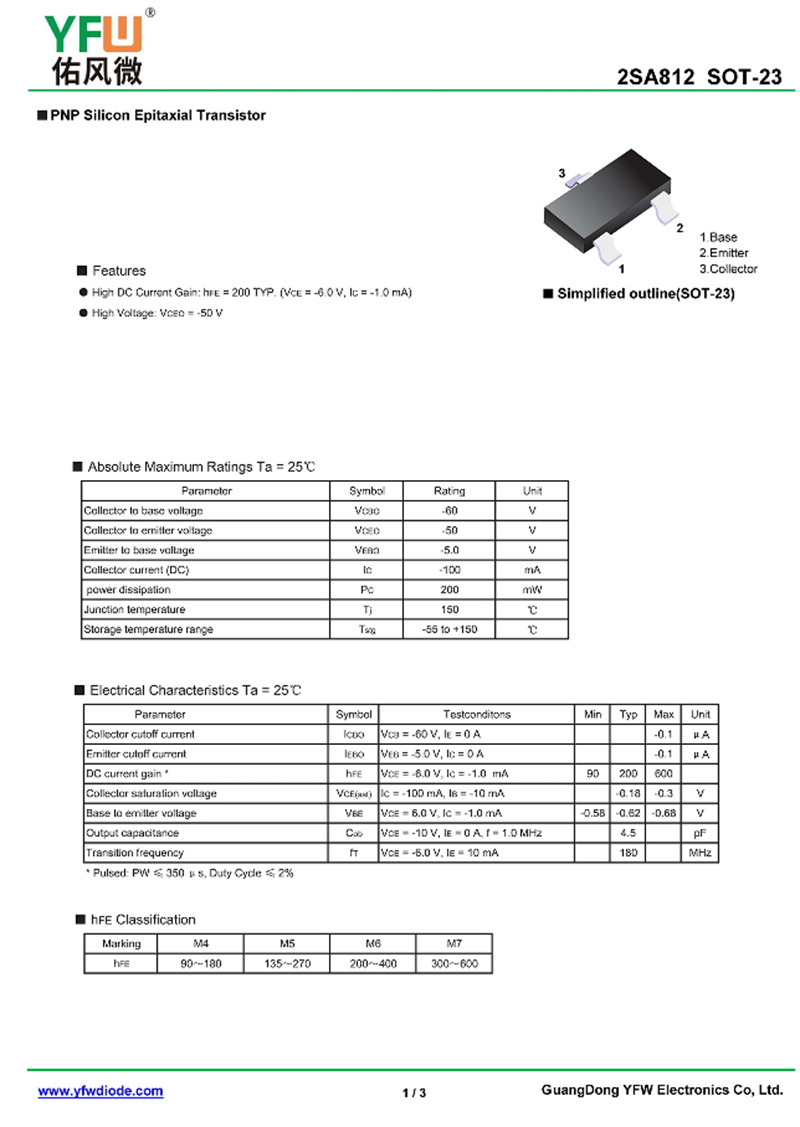 晶體管2SA733 規格書_價格_PDF手冊-廣東佑風微原廠2SA733 SOT-23_(YFW佑風微)品牌