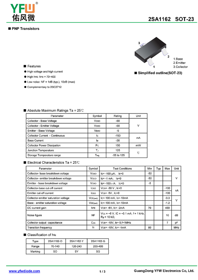 晶體管2SA1162 規(guī)格書_價(jià)格_PDF手冊(cè)-廣東佑風(fēng)微原廠2SA1162 SOT-23_(YFW佑風(fēng)微)品牌