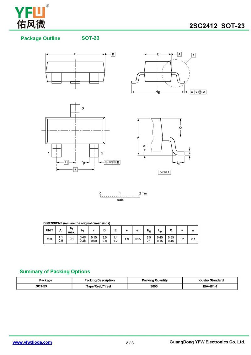 晶體管2SC2412 規格書_價格_PDF手冊-廣東佑風微原廠2SC2412 SOT-23_(YFW佑風微)品牌