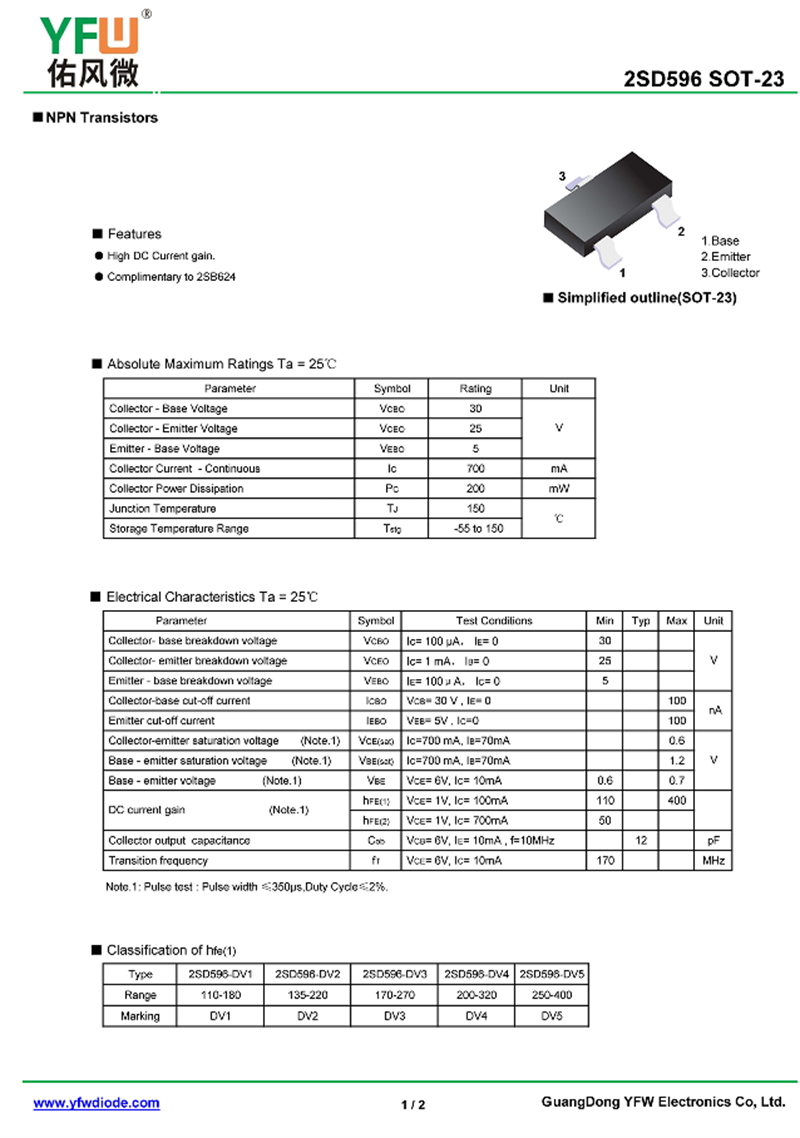 晶體管2SD596 規(guī)格書_價格_PDF手冊-廣東佑風(fēng)微原廠2SD596 SOT-23_(YFW佑風(fēng)微)品牌