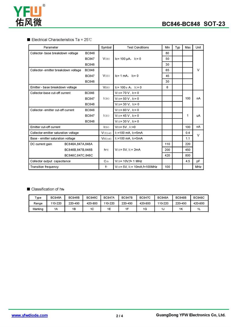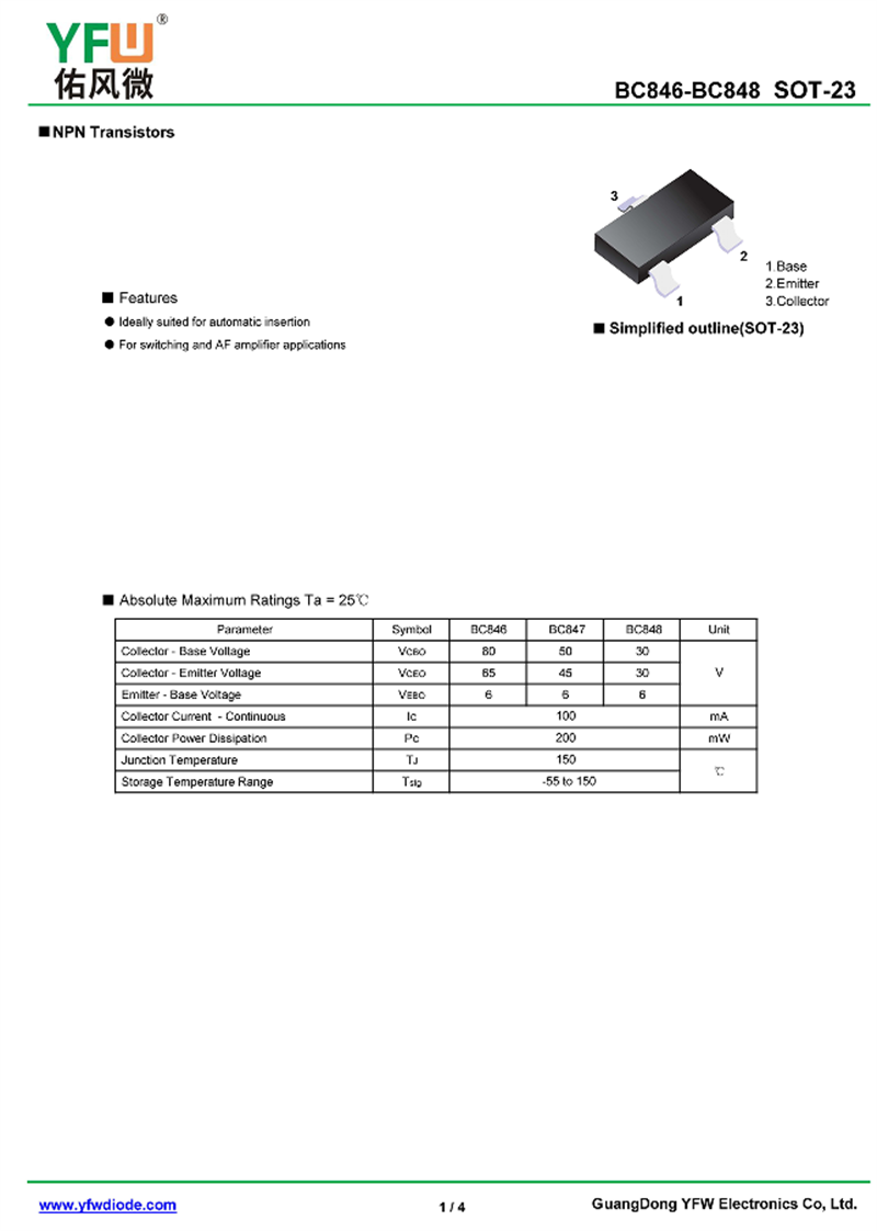晶體管BC846 規(guī)格書_價格_PDF手冊-廣東佑風(fēng)微原廠BC846 SOT-23_(YFW佑風(fēng)微)品牌