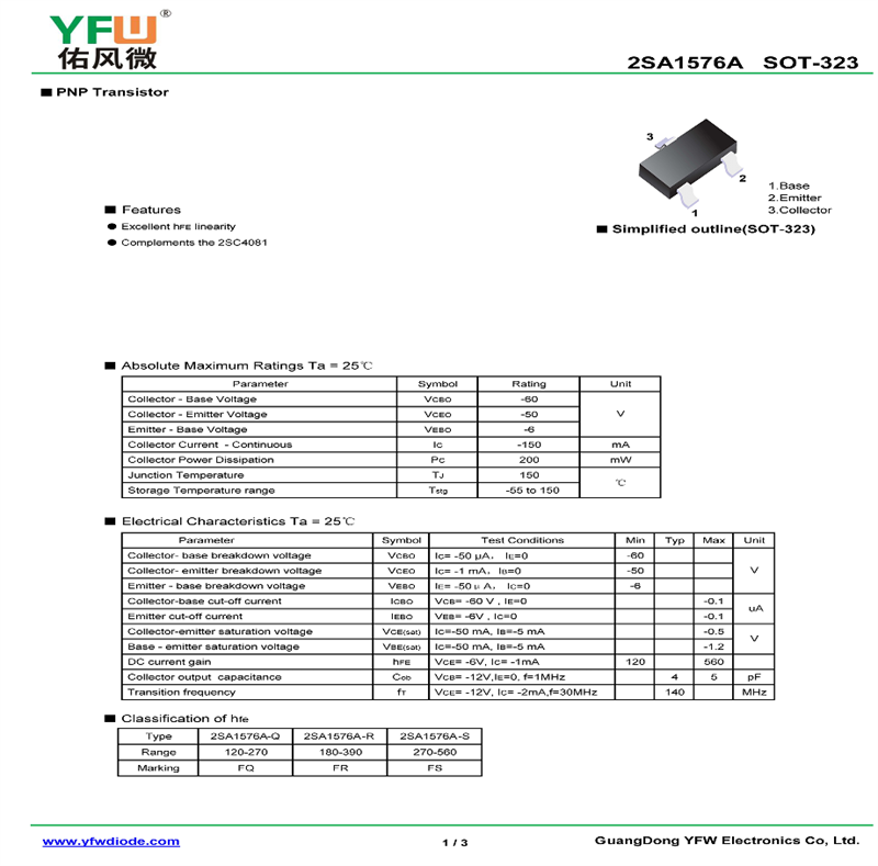 晶體管2SA1576A 規(guī)格書_價(jià)格_PDF手冊(cè)-廣東佑風(fēng)微原廠2SC3356 SOT-323_(YFW佑風(fēng)微)品牌