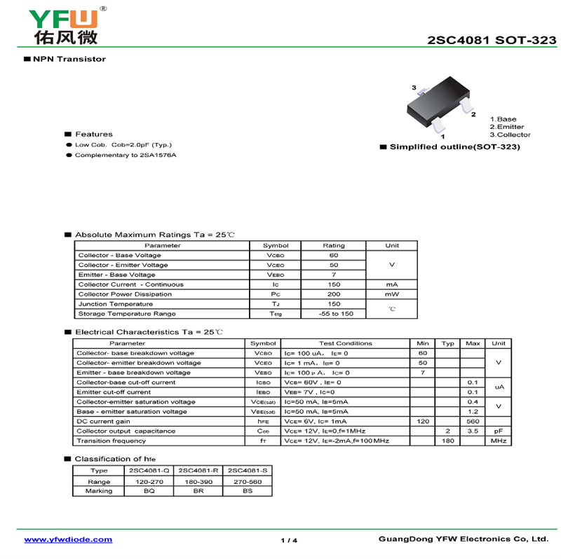 晶體管2SC2412W 規(guī)格書_價格_PDF手冊-廣東佑風(fēng)微原廠2SC2412W SOT-323_(YFW佑風(fēng)微)品牌