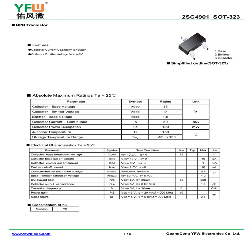 晶體管2SC4901 規(guī)格書_價格_PDF手冊-廣東佑風微原廠2SC4901 SOT-323_(YFW佑風微)品牌