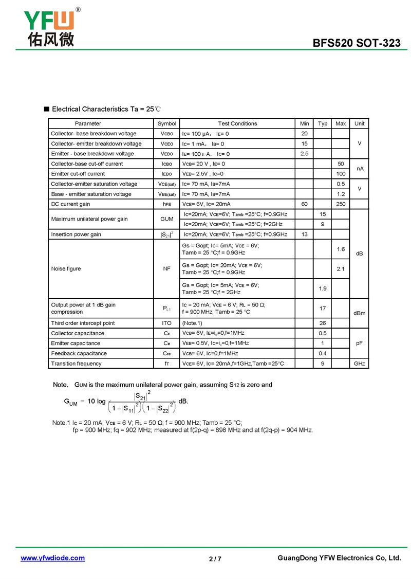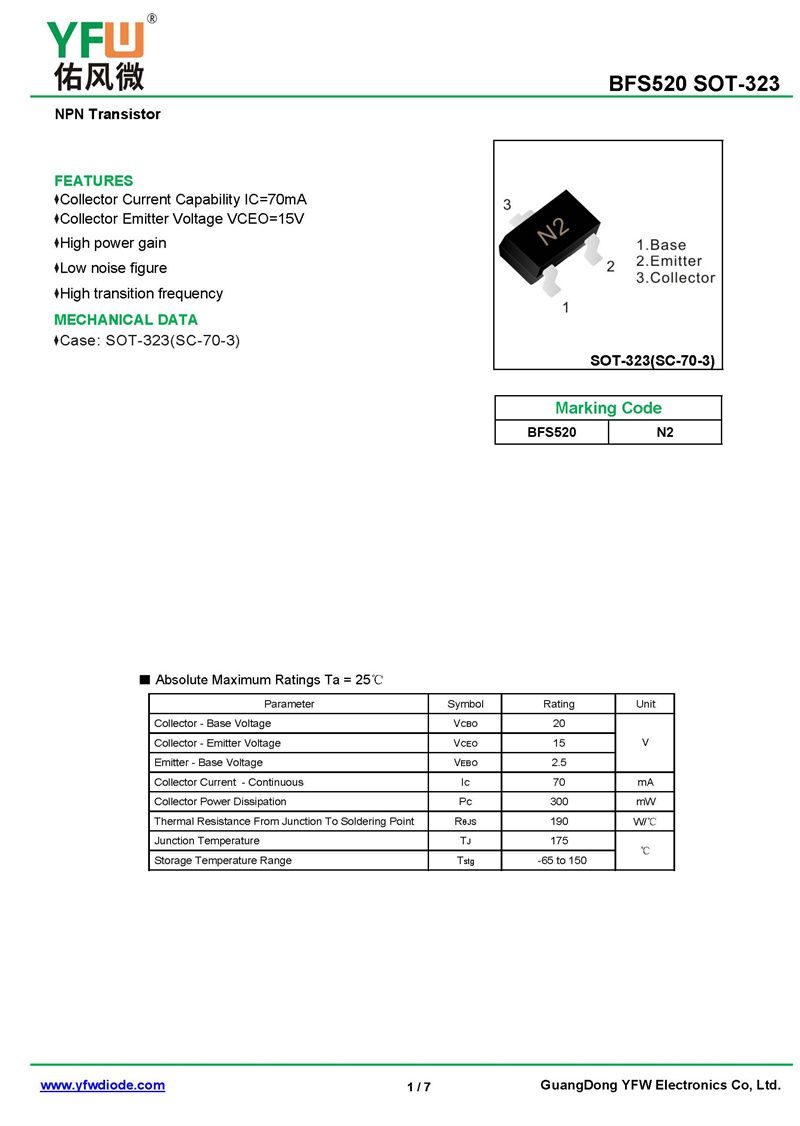 晶體管BFS520 規格書_價格_PDF手冊-廣東佑風微原廠BFS520 SOT-323_(YFW佑風微)品牌