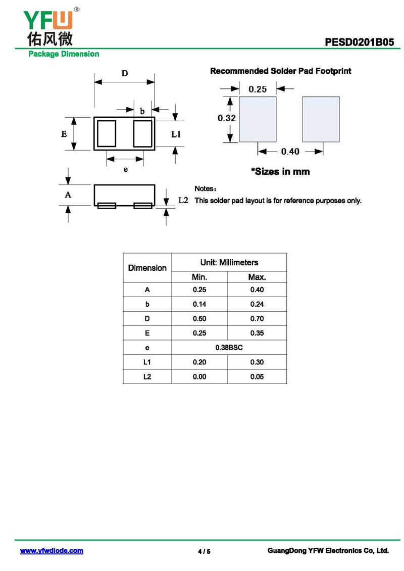 靜電保護二極管PESD0201B05 規格書_價格_PDF手冊-廣東佑風微原廠PESD0201B05 0201_(YFW佑風微)品牌