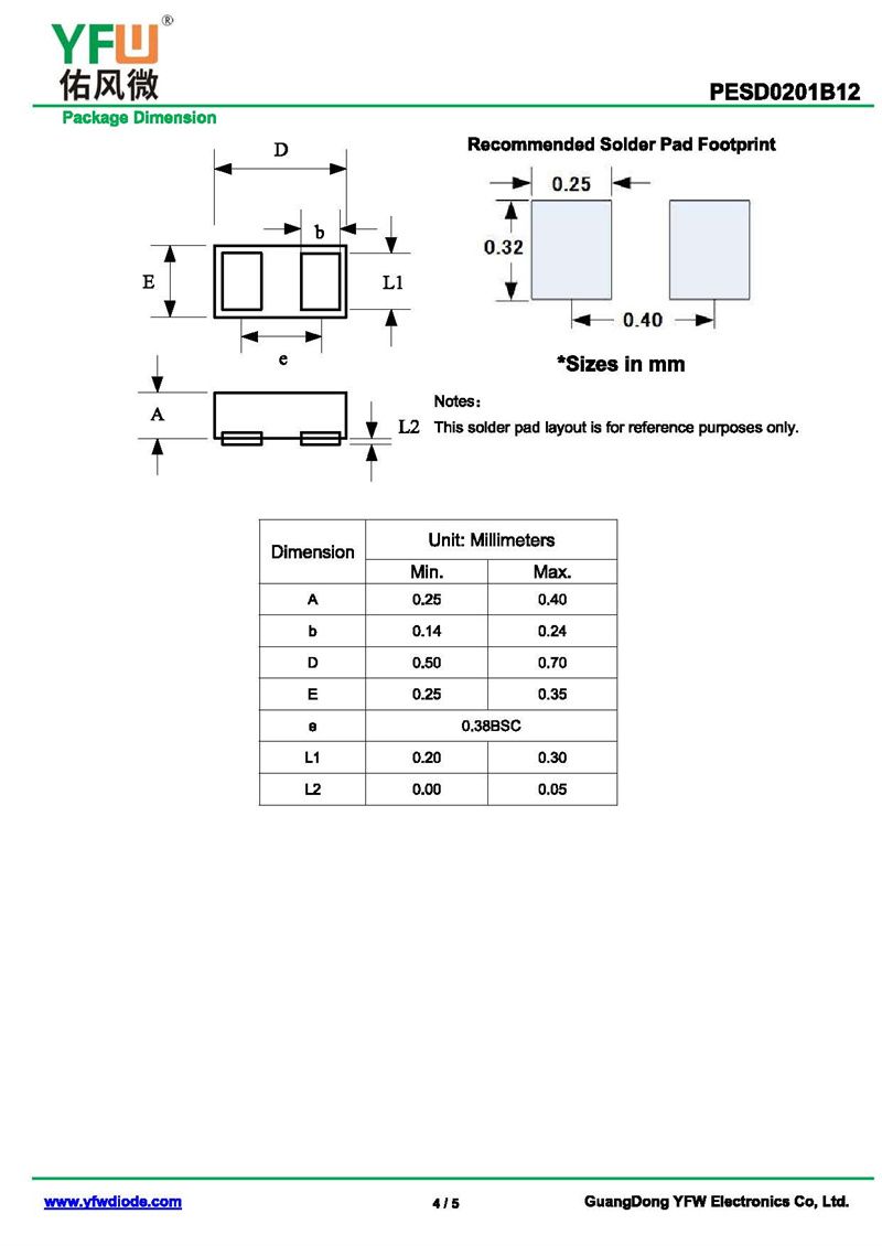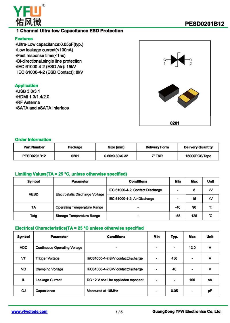 靜電保護二極管PESD0201B12 規格書_價格_PDF手冊-廣東佑風微原廠PESD0201B12 0201_(YFW佑風微)品牌