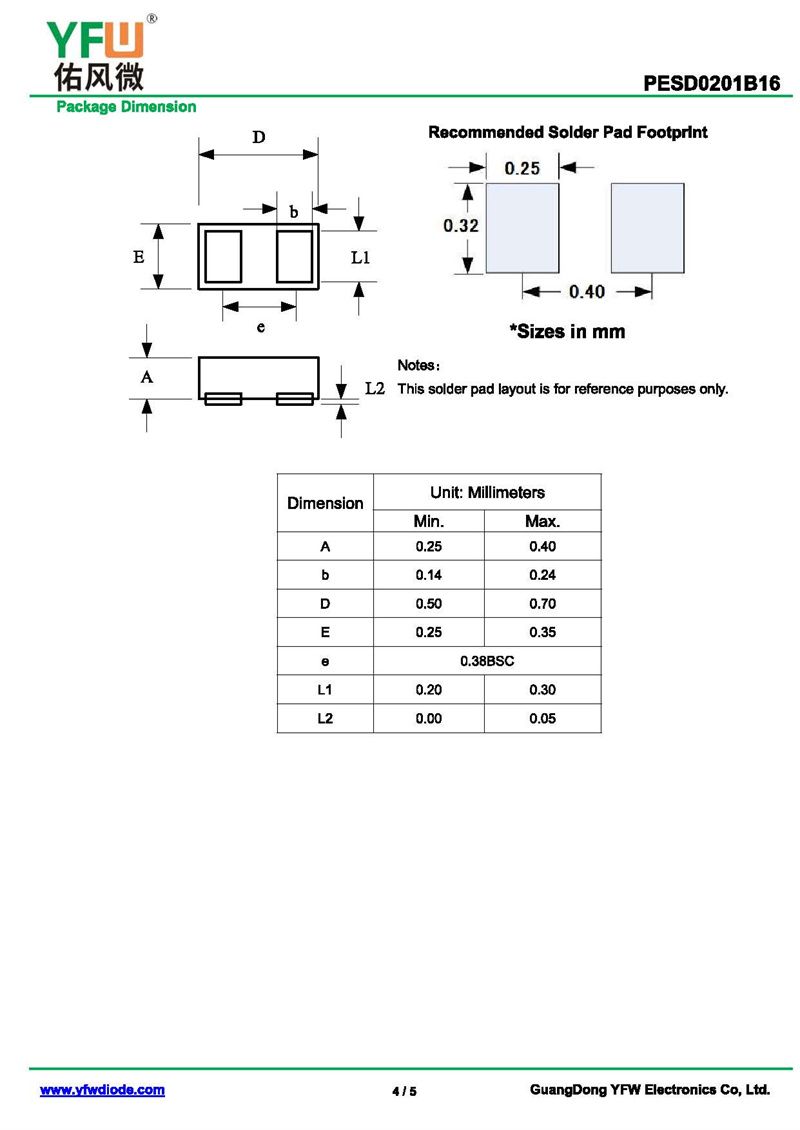 靜電保護二極管PESD0201B16 規格書_價格_PDF手冊-廣東佑風微原廠PESD0201B16 0201_(YFW佑風微)品牌