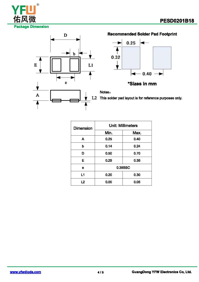 靜電保護二極管PESD0201B18 規(guī)格書_價格_PDF手冊-廣東佑風微原廠PESD0201B18 0201_(YFW佑風微)品牌