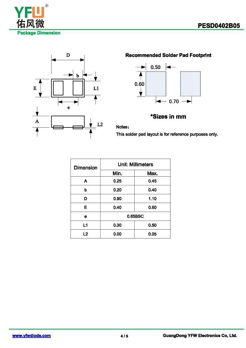 靜電保護二極管PESD0402B05 規格書_價格_PDF手冊-廣東佑風微原廠PESD0402B05 0402_(YFW佑風微)品牌