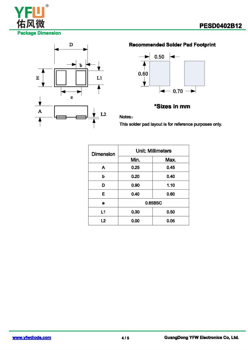 靜電保護(hù)二極管PESD0402B12 規(guī)格書_價(jià)格_PDF手冊(cè)-廣東佑風(fēng)微原廠PESD0402B12 0402_(YFW佑風(fēng)微)品牌