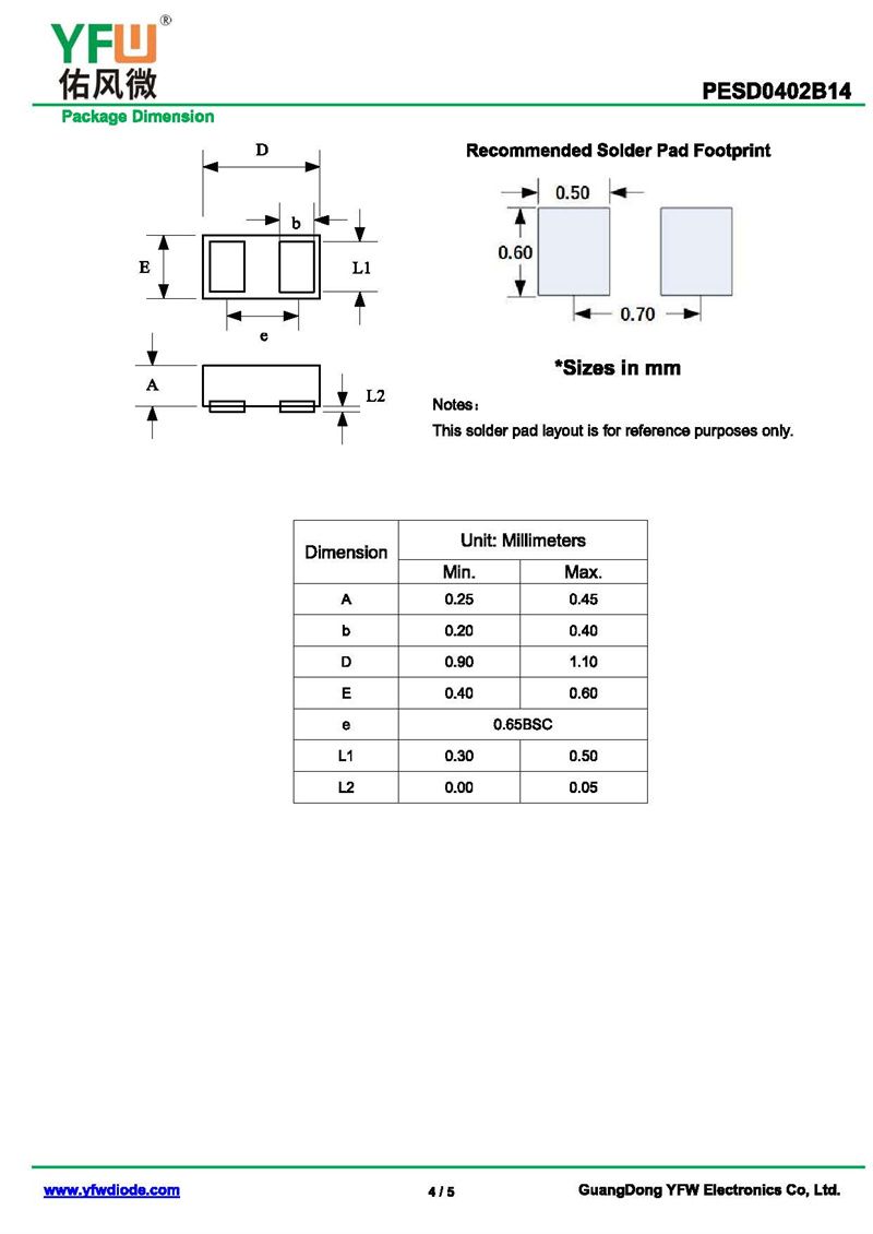 靜電保護二極管PESD0402B14 規格書_價格_PDF手冊-廣東佑風微原廠PESD0402B14 0402_(YFW佑風微)品牌