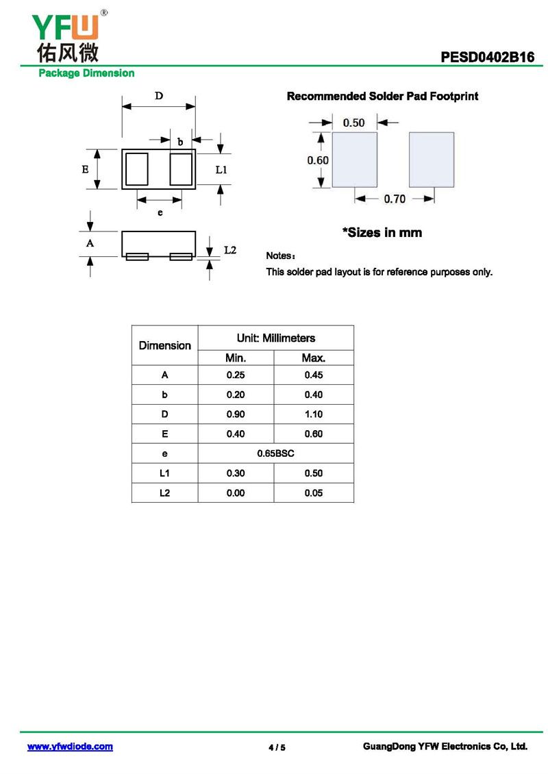 靜電保護二極管PESD0402B16 規格書_價格_PDF手冊-廣東佑風微原廠PESD0402B16 0402_(YFW佑風微)品牌
