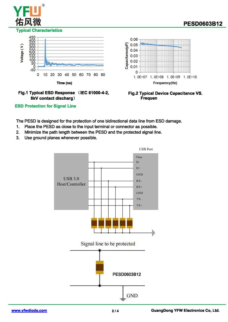 靜電保護二極管PESD0603B12 規格書_價格_PDF手冊-廣東佑風微原廠PESD0603B12 0603_(YFW佑風微)品牌