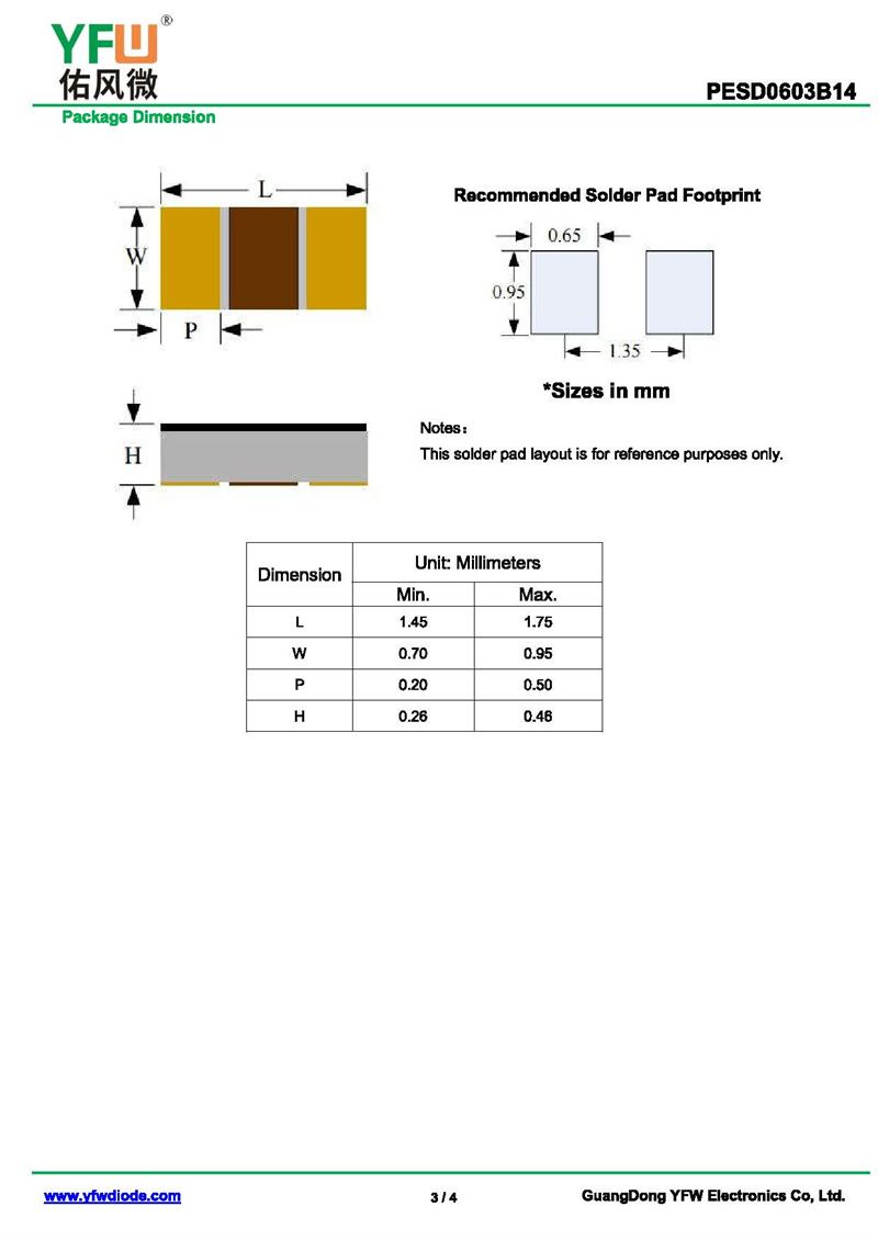 靜電保護二極管PESD0603B14 規格書_價格_PDF手冊-廣東佑風微原廠PESD0603B14 0603_(YFW佑風微)品牌