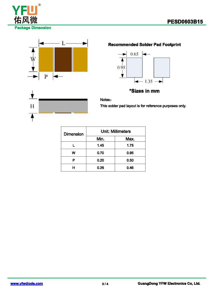 靜電保護二極管PESD0603B15 規格書_價格_PDF手冊-廣東佑風微原廠PESD0603B15 0603_(YFW佑風微)品牌