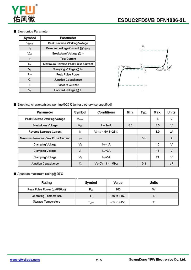 靜電保護(hù)二極管ESDUC2FD5VB 規(guī)格書_價格_PDF手冊-廣東佑風(fēng)微原廠ESDUC2FD5VB DFN1006-2L_(YFW佑風(fēng)微)品牌