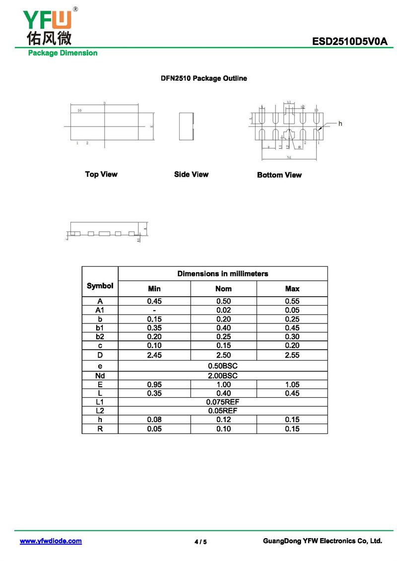 靜電保護二極管ESD2510D5V0A 規格書_價格_PDF手冊-廣東佑風微原廠ESD2510D5V0A DFN2510_(YFW佑風微)品牌