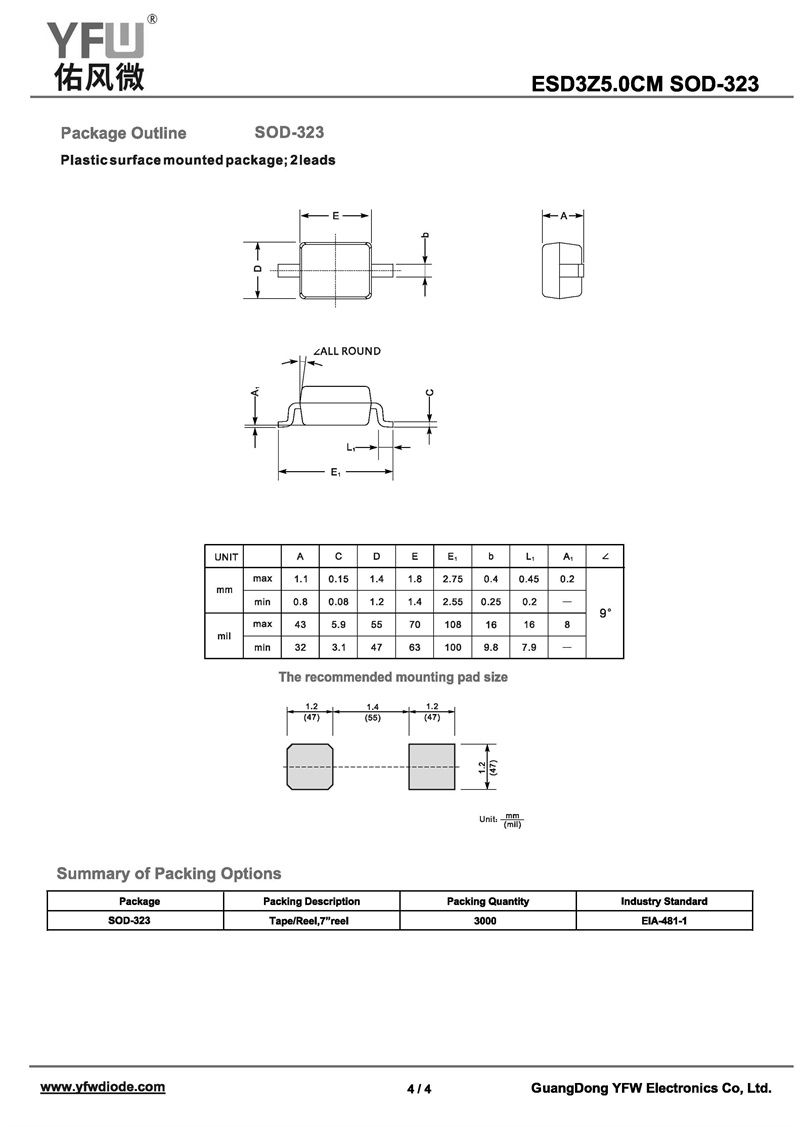 靜電保護二極管ESD3Z5.0CM 規格書_價格_PDF手冊-廣東佑風微原廠ESD3Z5.0CM SOD-323_(YFW佑風微)品牌