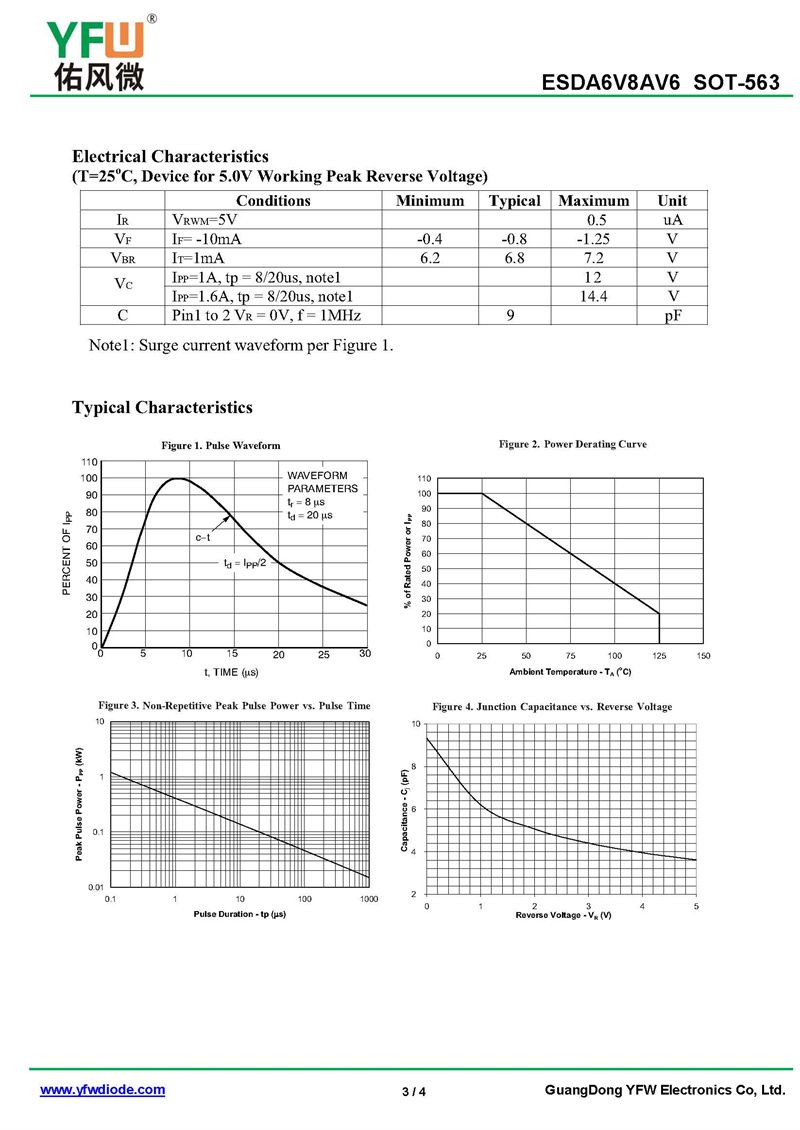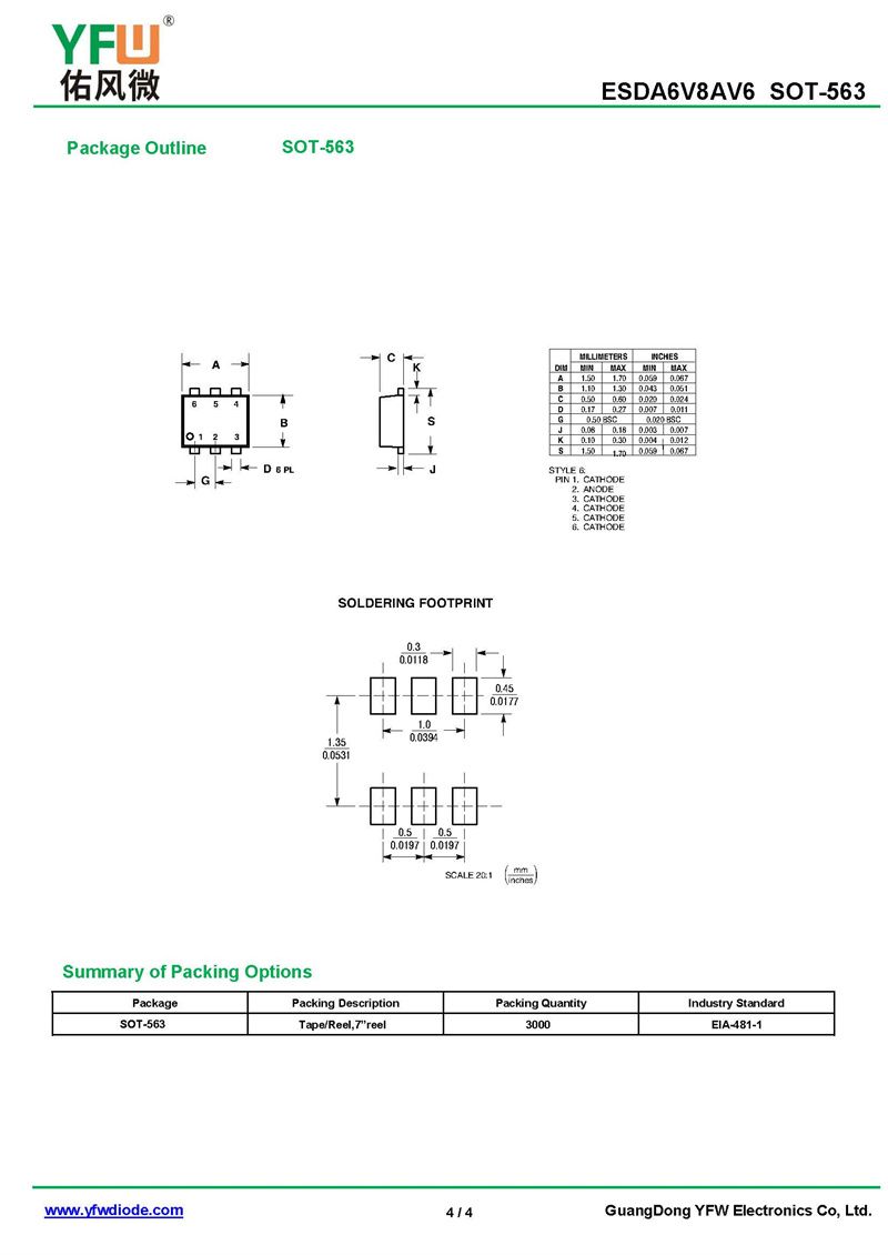 靜電保護二極管ESDA6V8AV6 規格書_價格_PDF手冊-廣東佑風微原廠ESDA6V8AV6 SOT-563_(YFW佑風微)品牌