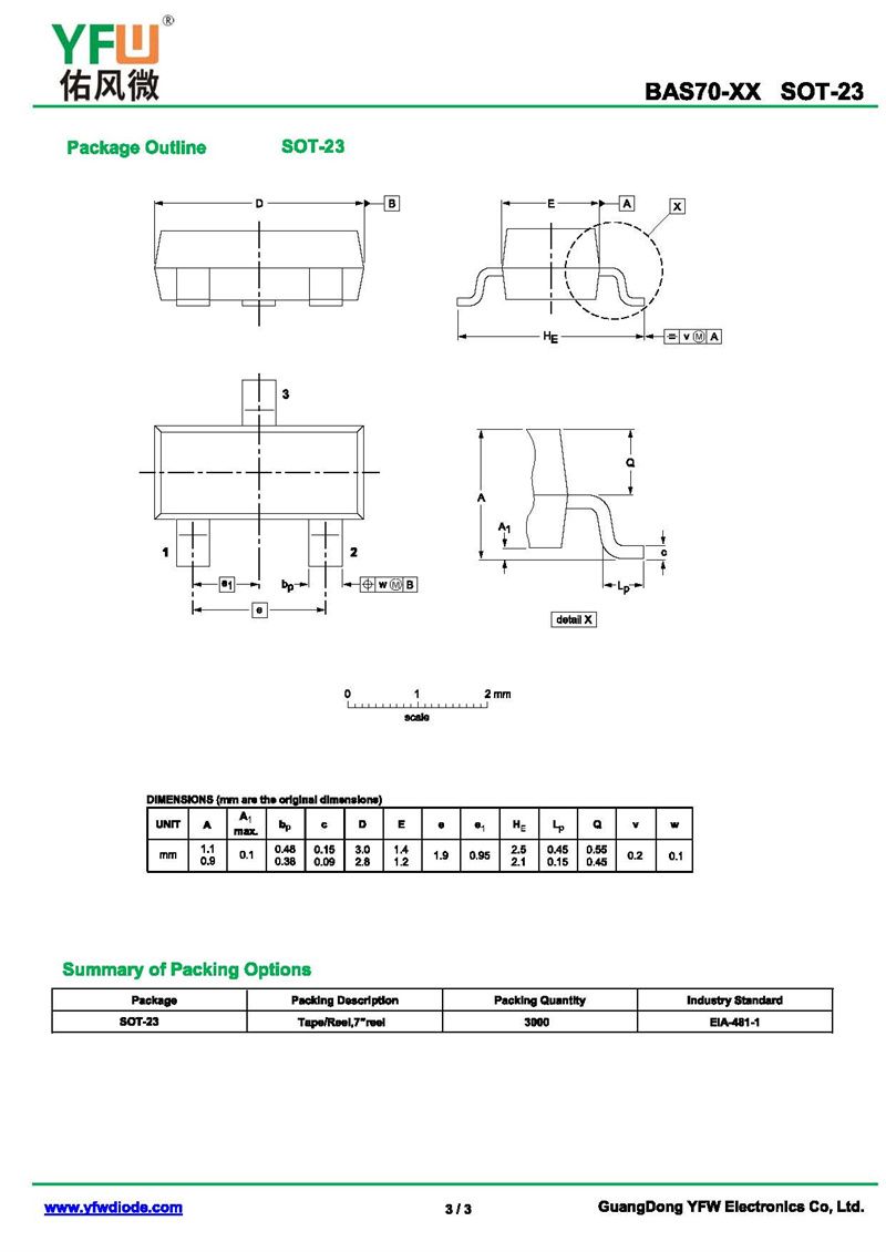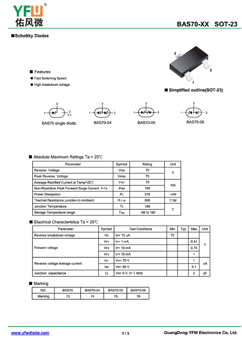 開關二極管 BAS70-05 規格書_價格_PDF手冊-廣東佑風微原廠BAS70-05 SOT-23_(YFW佑風微)品牌