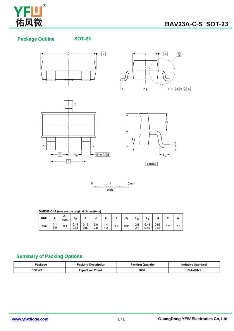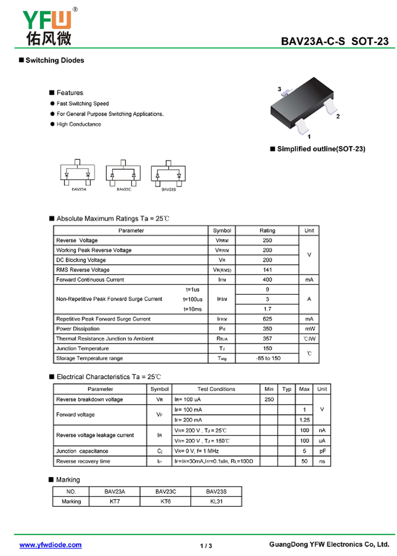 開關二極管BAV23A-C-S 規(guī)格書_價格_PDF手冊-廣東佑風微原廠BAV23A-C-S SOT-23_(YFW佑風微)品牌
