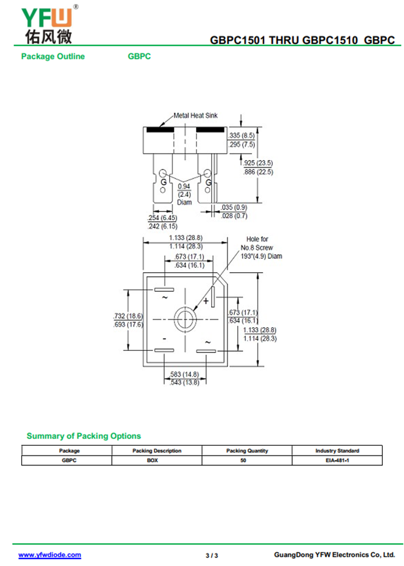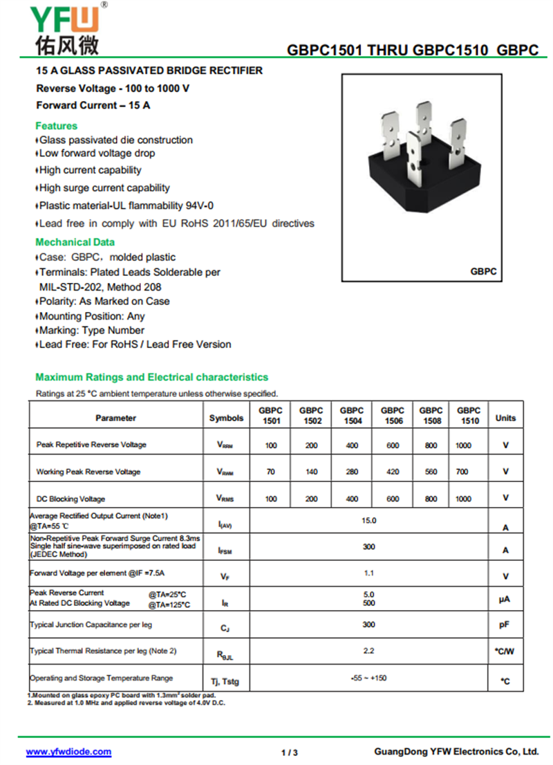 橋式整流器GBPC1508 規(guī)格書_價格_PDF手冊-廣東佑風微原廠GBPC1508 GBPC_(YFW佑風微)品牌