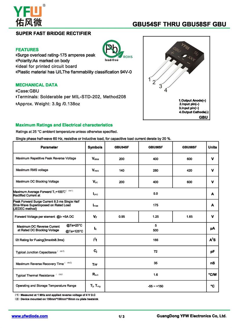 橋式整流器GBU58SF 規格書_價格_PDF手冊-廣東佑風微原廠GBU58SF GBU_(YFW佑風微)品牌