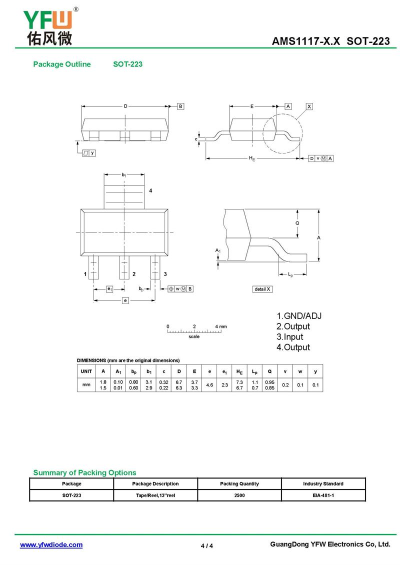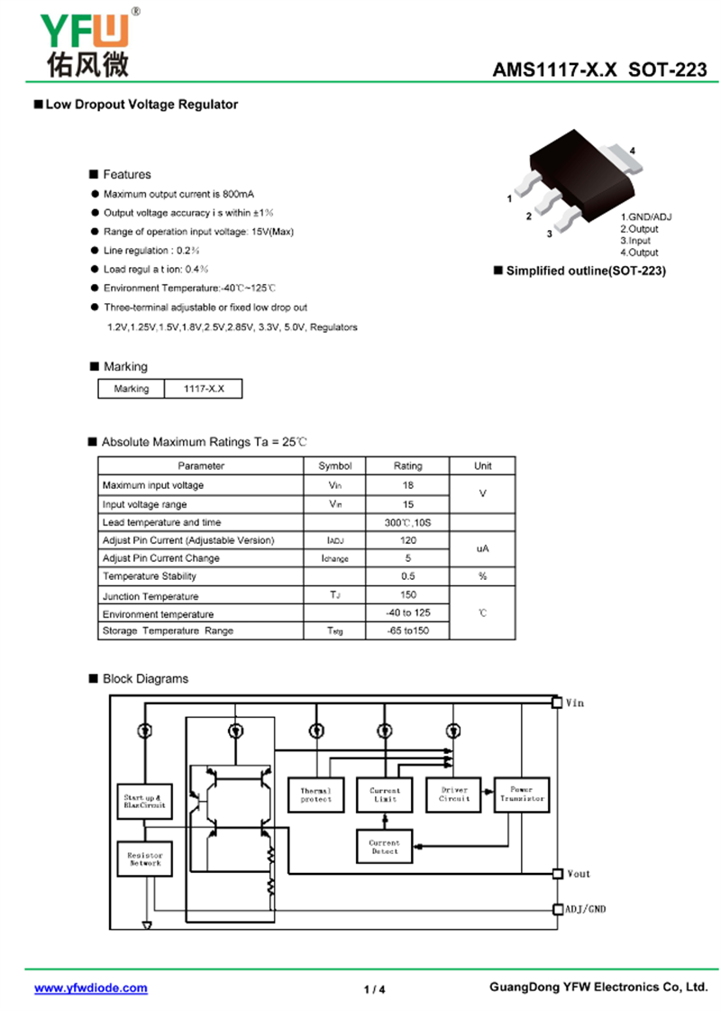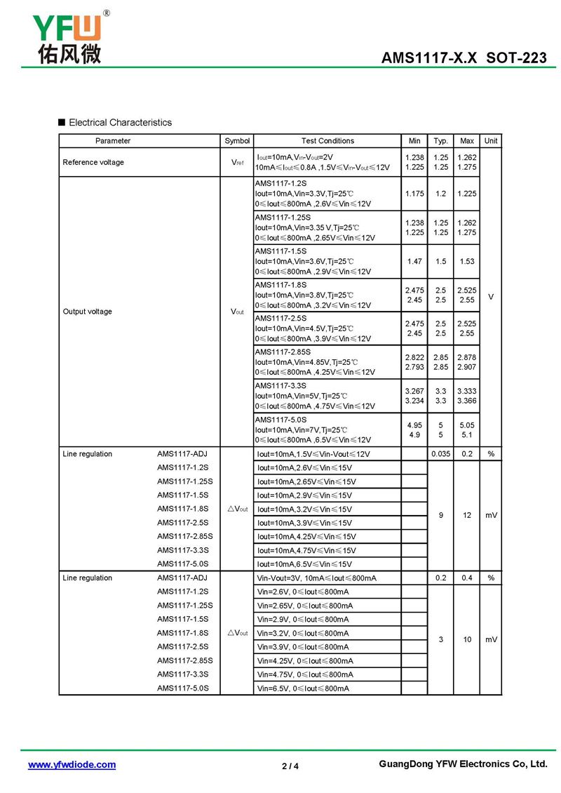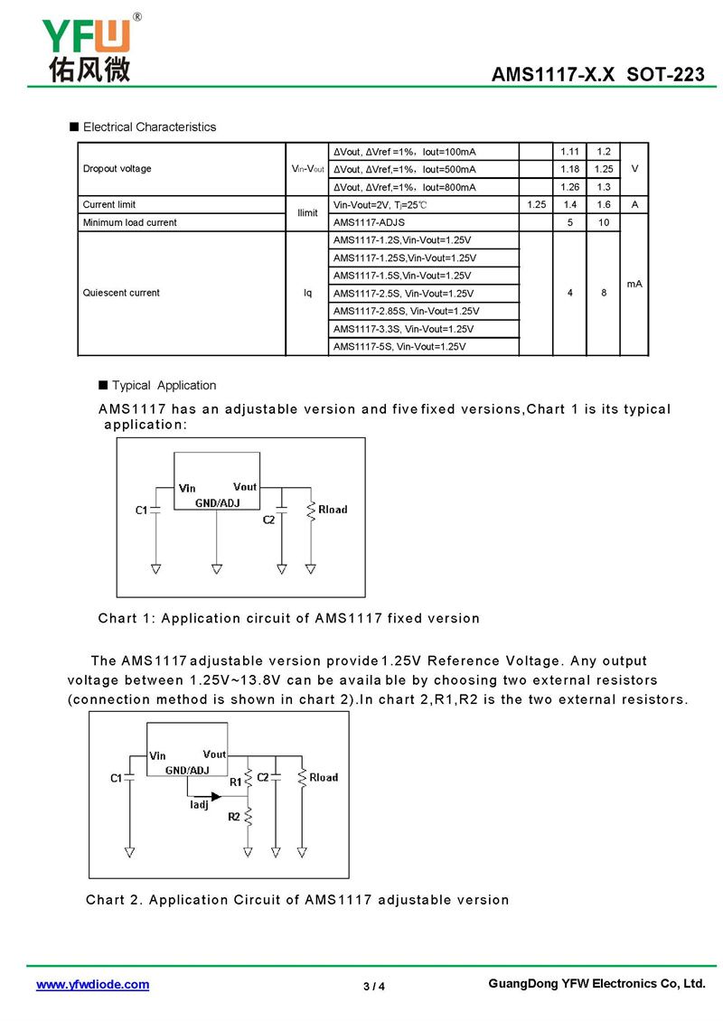 三端穩(wěn)壓管AMS1117-1.2S 規(guī)格書_價格_PDF手冊-廣東佑風(fēng)微原廠AMS1117-1.2S SOT-223_(YFW佑風(fēng)微)品牌