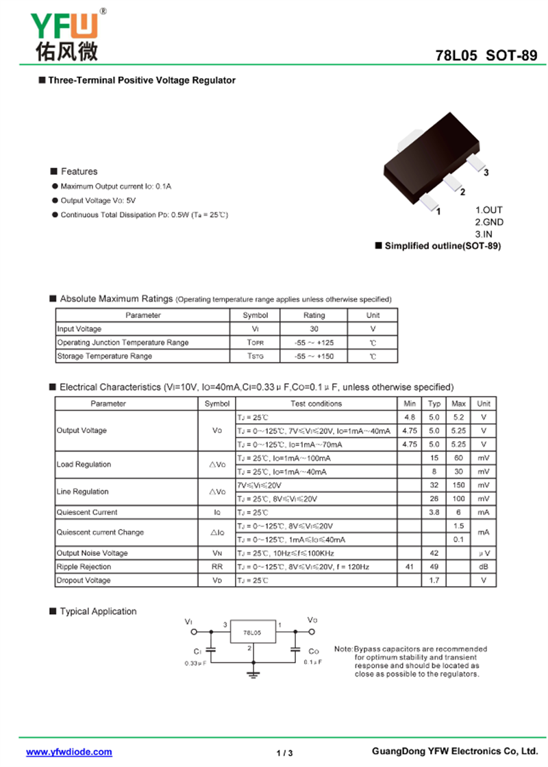 三端穩壓管78L05 規格書_價格_PDF手冊-廣東佑風微原廠78L05 SOT-89_(YFW佑風微)品牌