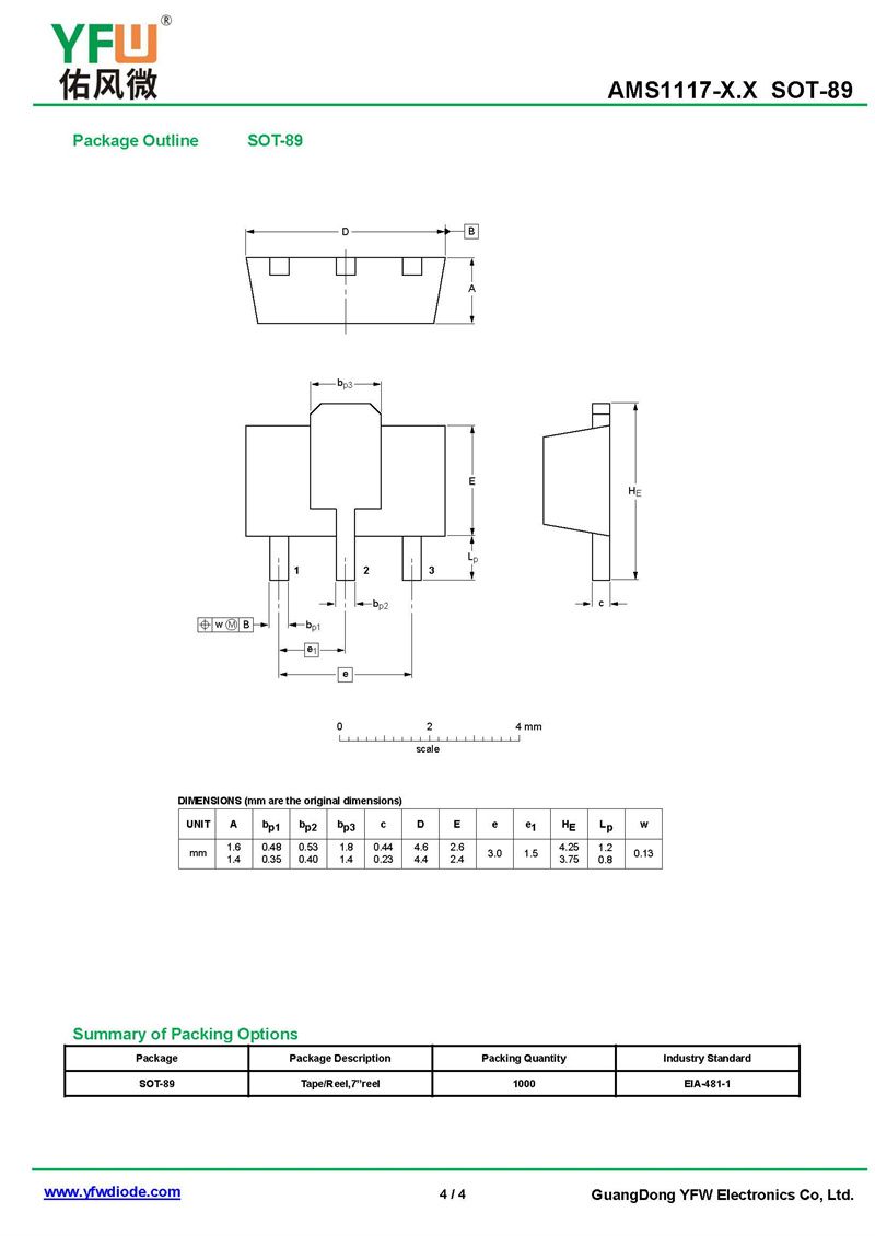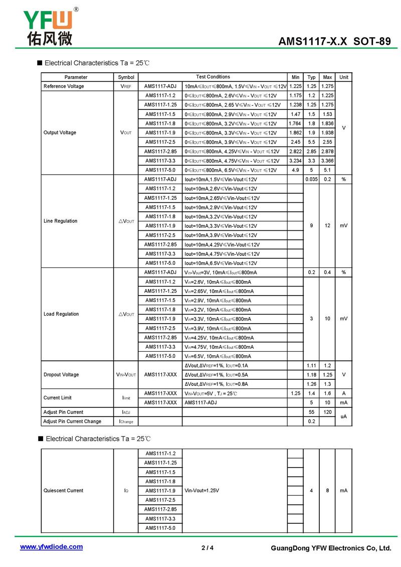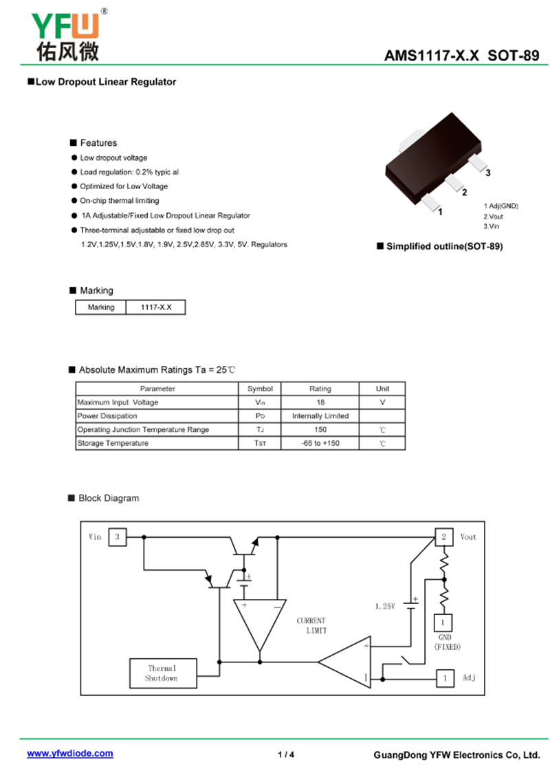 三端穩壓管AMS1117-1.2 規格書_價格_PDF手冊-廣東佑風微原廠AMS1117-1.2 SOT-89_(YFW佑風微)品牌
