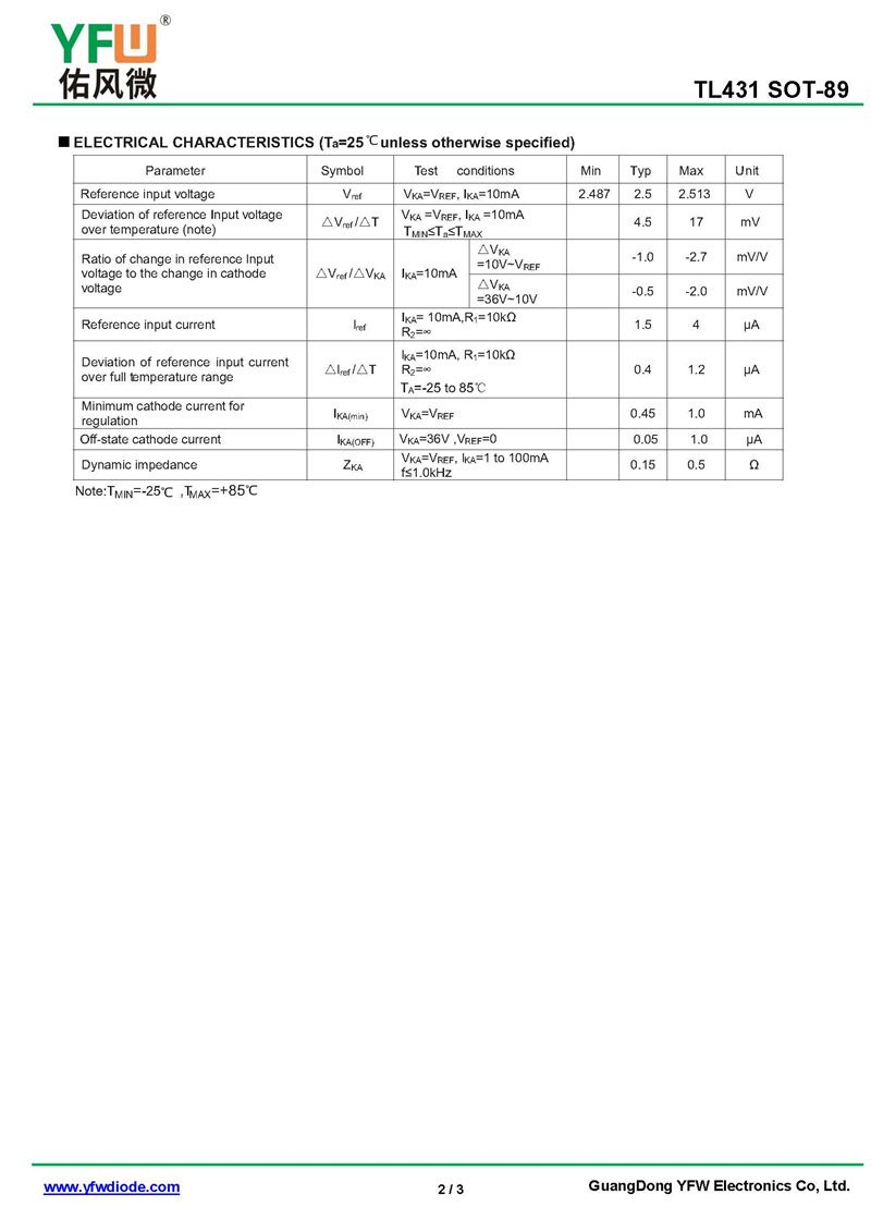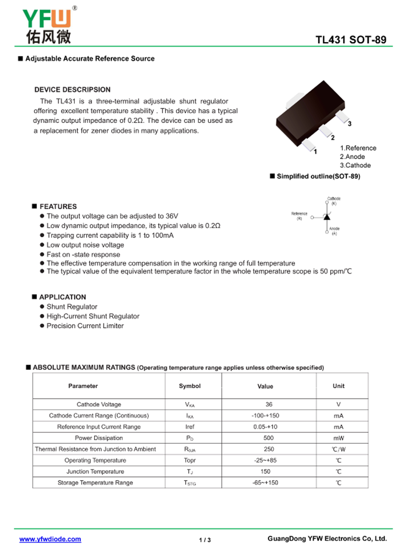 三端穩(wěn)壓管TL431 規(guī)格書_價格_PDF手冊-廣東佑風微原廠TL431 SOT-89_(YFW佑風微)品牌