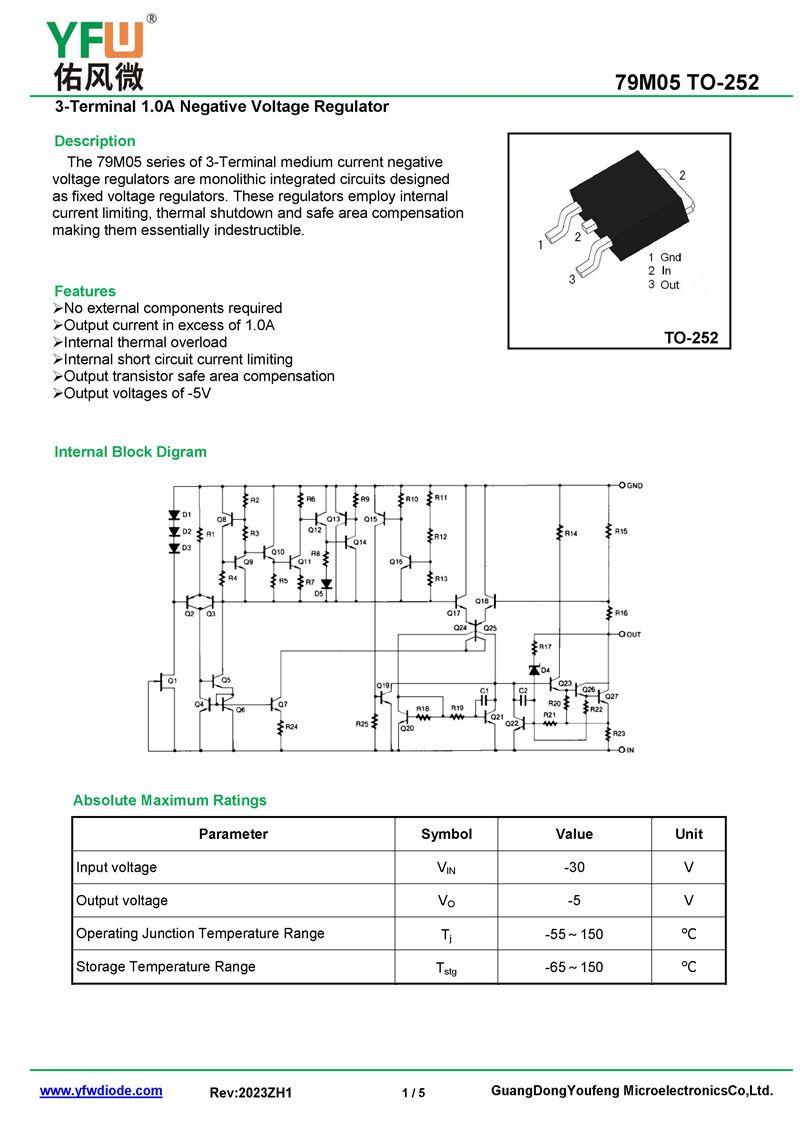 三端穩壓管78M05-1A 規格書_價格_PDF手冊-廣東佑風微原廠78M05-1A TO-252_(YFW佑風微)品牌